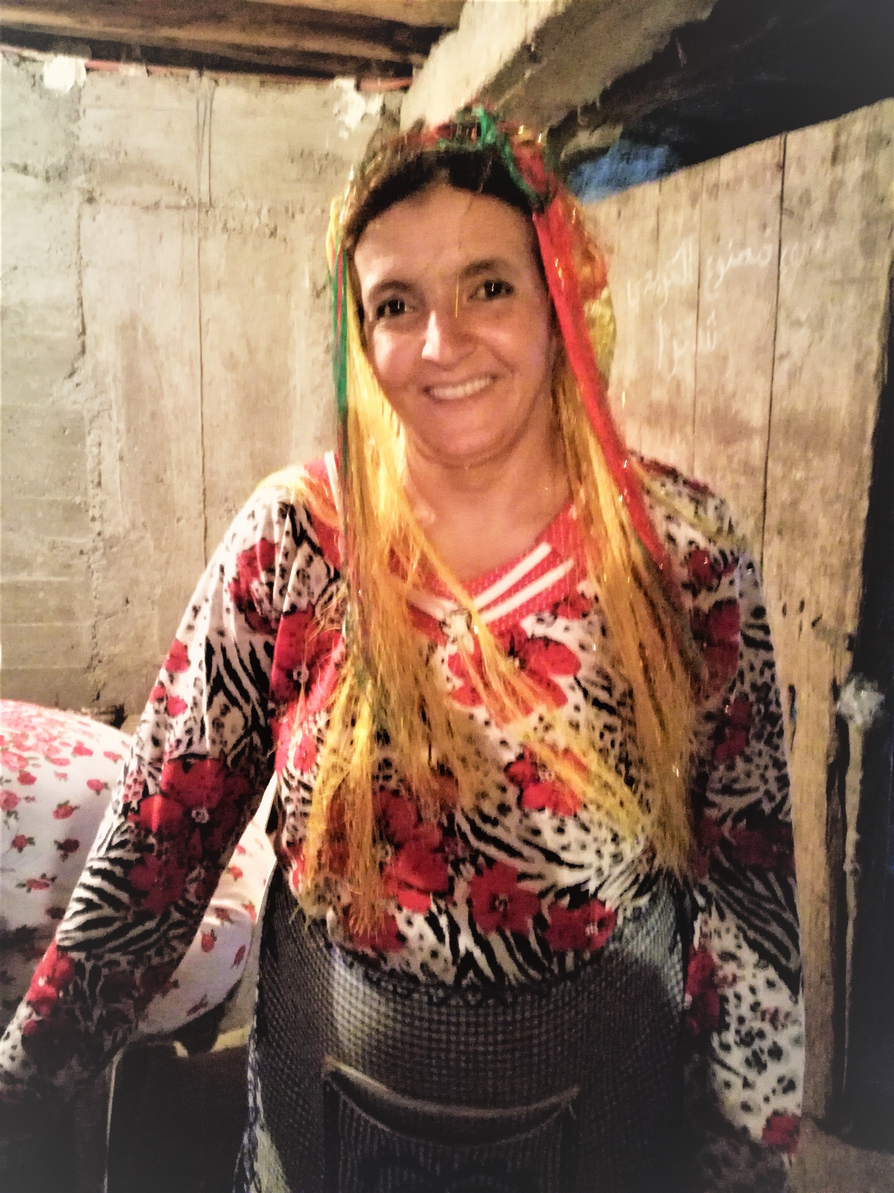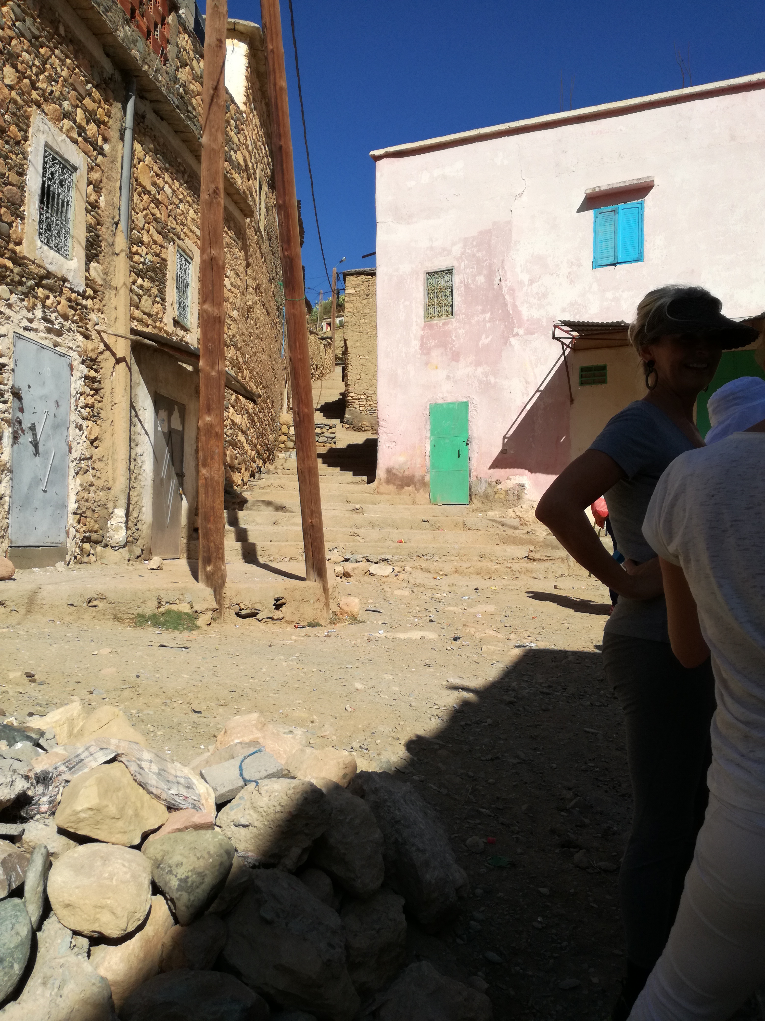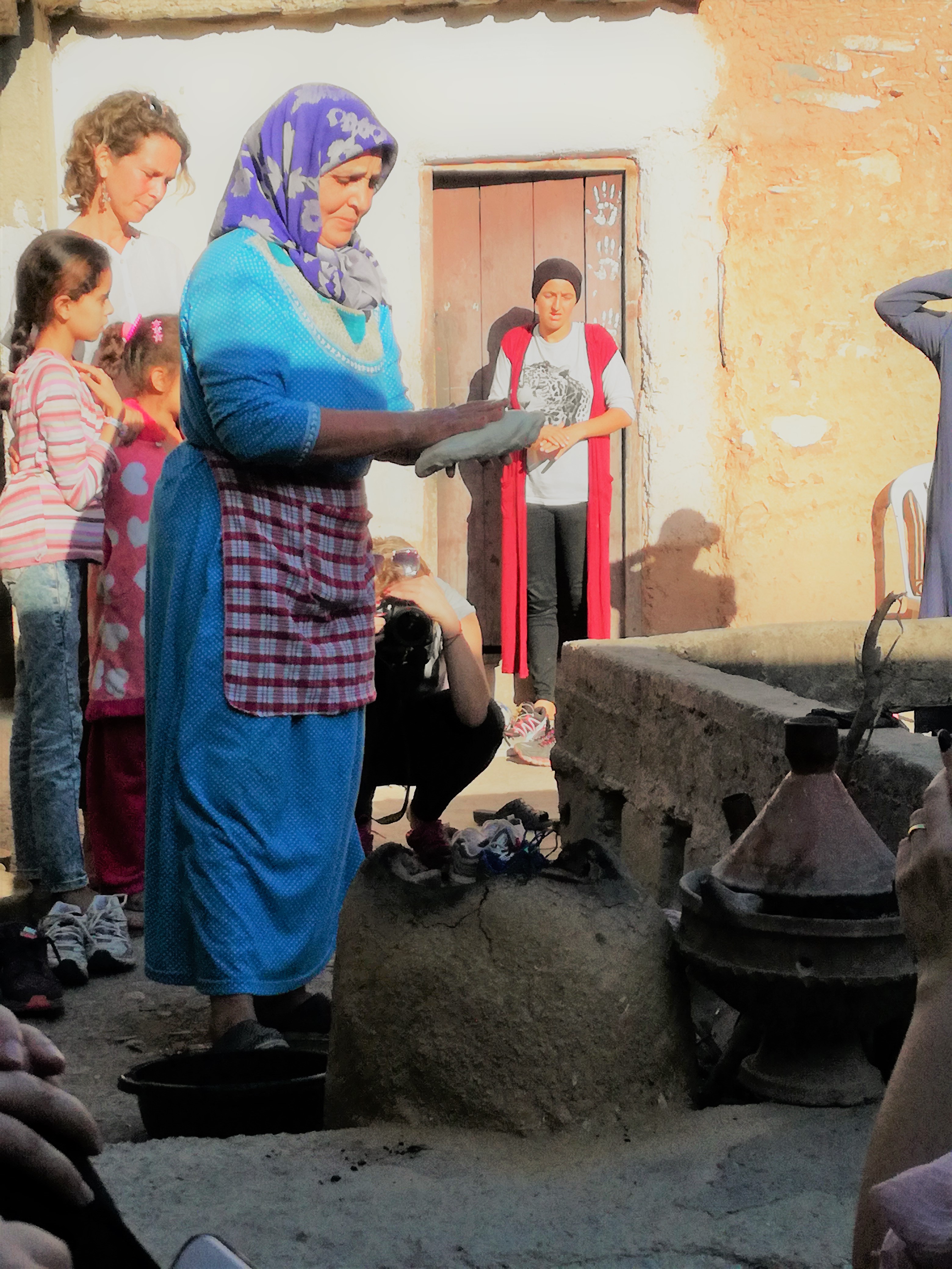 Tenslotte arriveren we in een dorp, waar we Berbervrouwen leren kennen. Zij laten ons fier hun huizen zien. Bij een dame met weefgetouw vragen we haar naam. Ze antwoordt: ‘Aïsha’ en we beginnen spontaan het nummer van Cheb Chaled te zingen… mét haar.