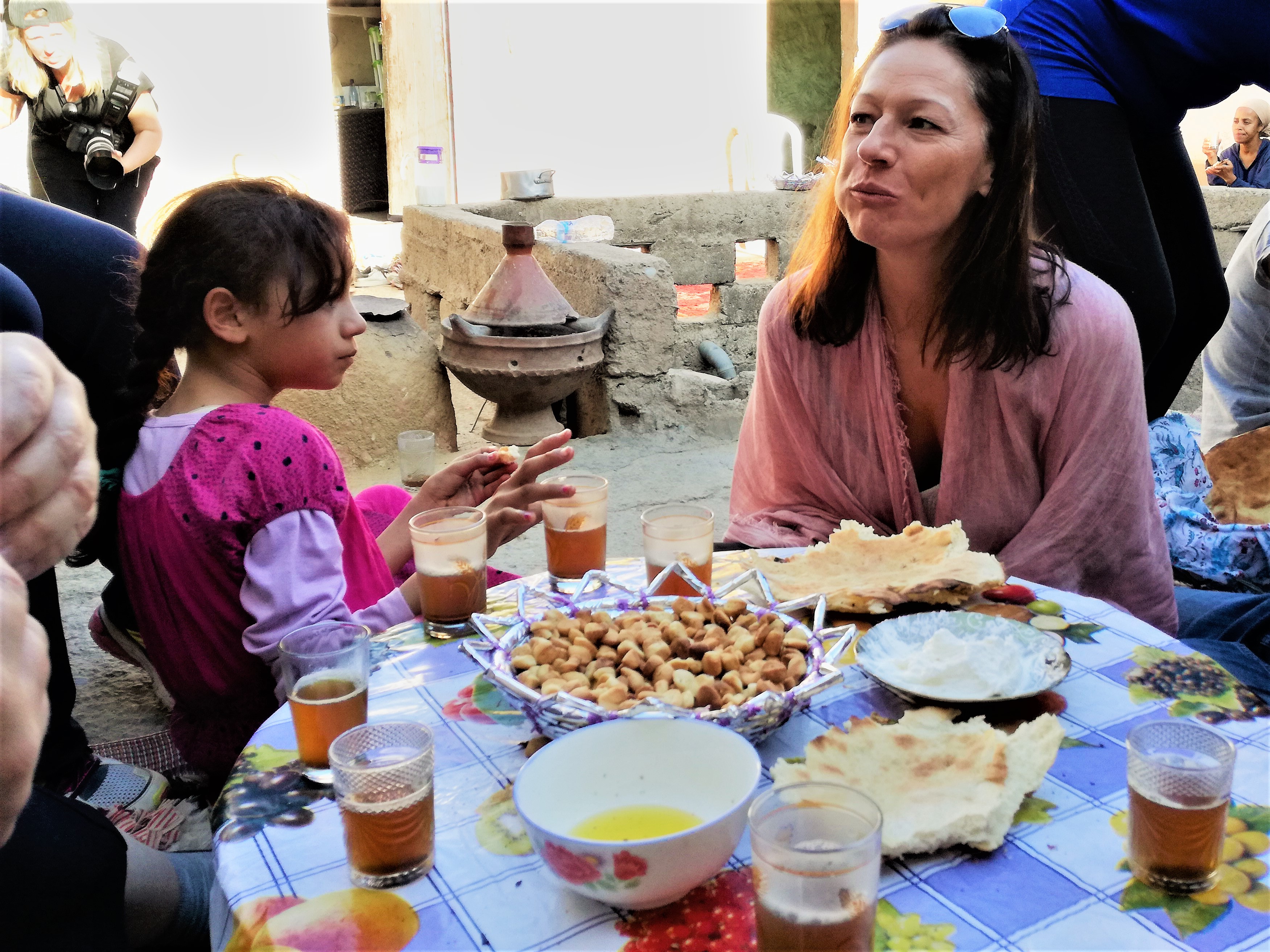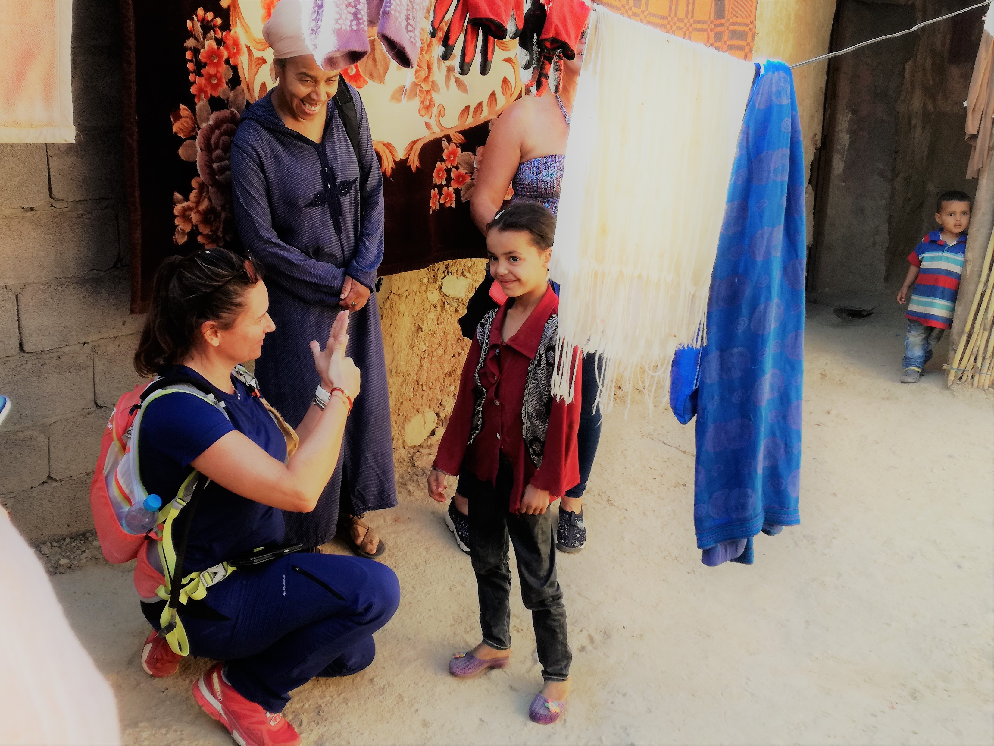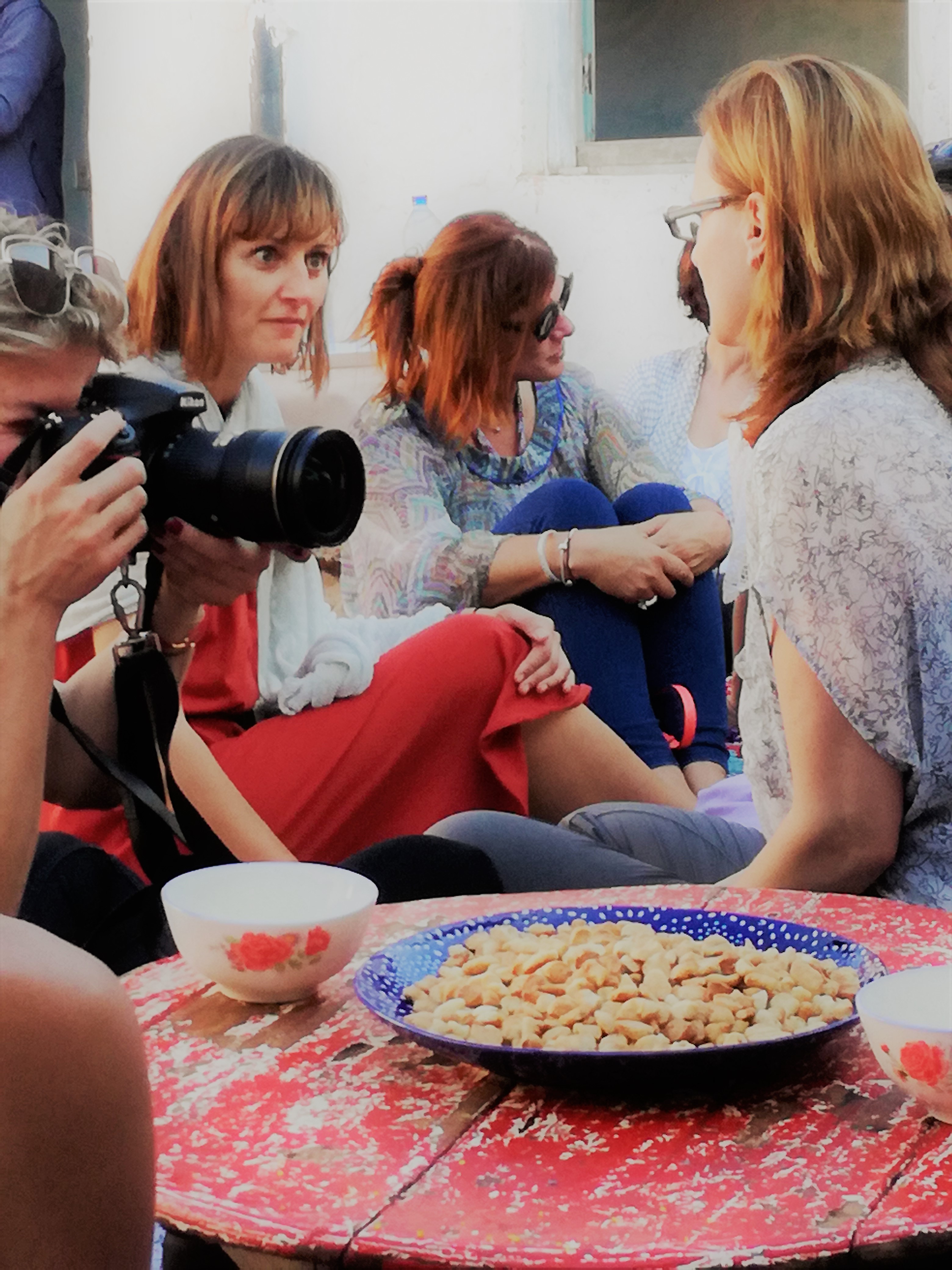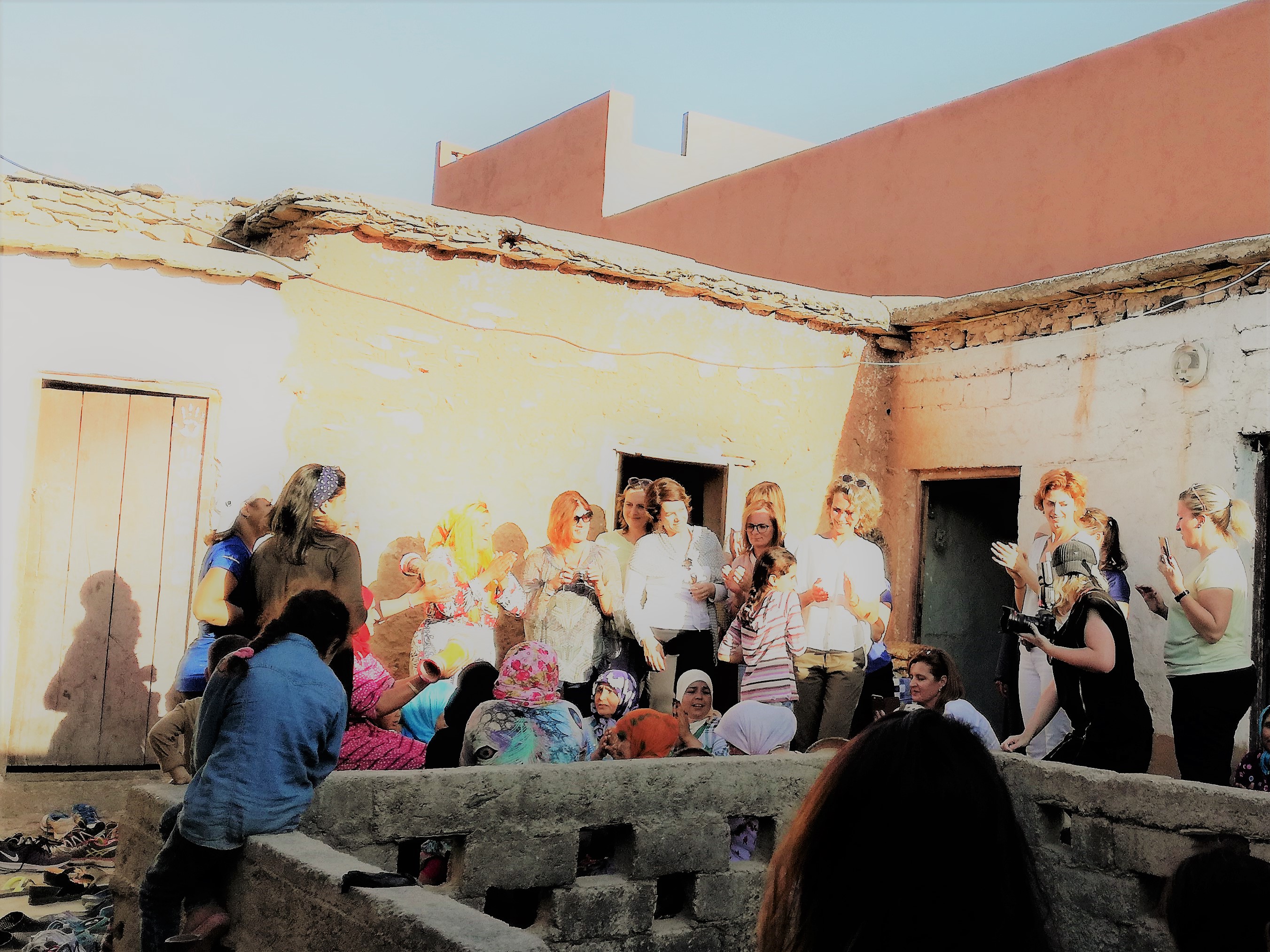 Tenslotte arriveren we in een dorp, waar we Berbervrouwen leren kennen. Zij laten ons fier hun huizen zien. Bij een dame met weefgetouw vragen we haar naam. Ze antwoordt: ‘Aïsha’ en we beginnen spontaan het nummer van Cheb Chaled te zingen… mét haar.
