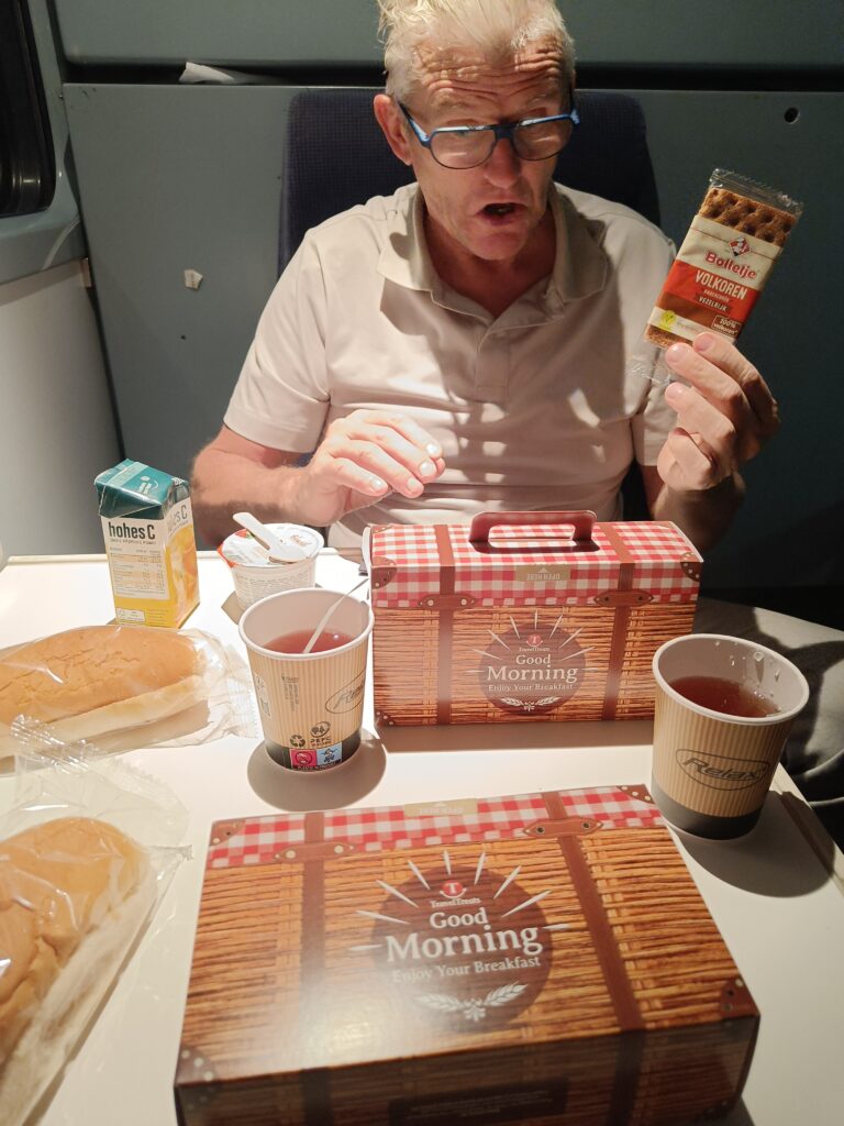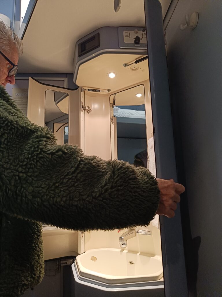 De heenreis was wat hobbelig, en dat lag vooral aan de ligging van de coupé (helemaal aan het einde), het raampje dat af en toe opensprong en een rolgordijn met kuren. Op de terugreis heb ik als een roosje geslapen.