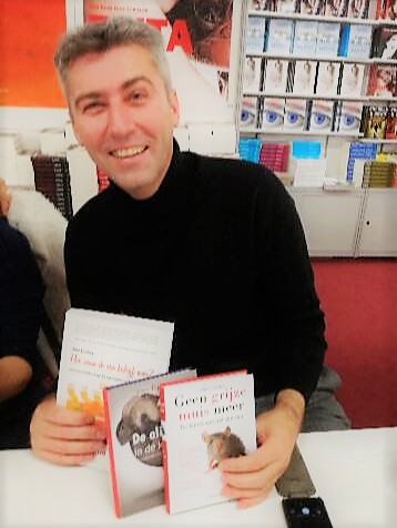 boekenbeurs antwerpenAls ik – bezielde boekenwurm – een schrijver van eigen bodem ontdek, ben ik helemaal in de wolken. Aarzelend bleef ik even bij de stand van Uitgeverij Artus staan. Met grote ogen keek ik naar de vele boeken van Ludo Geluykens. Huh? Hij kwam naast me staan. Zelf heb ik nét mijn eerste boek geschreven, dus vuurde ik mijn vragen af.