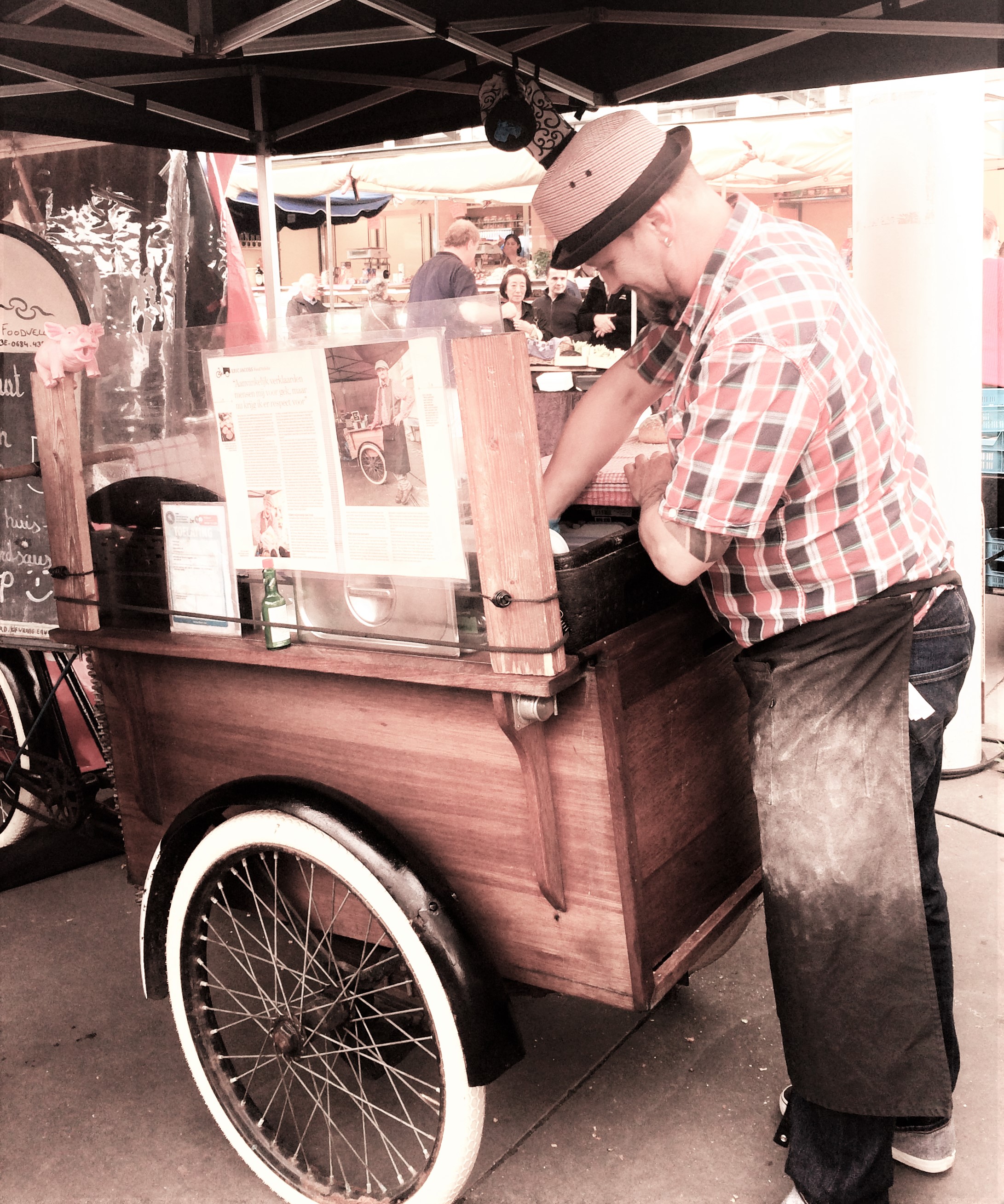 Om onze magen met échte ‘Belgische kost’ te vullen, bestellen we een frietje op de Melkmarkt bij frituur ’t Stad. Yummie!
