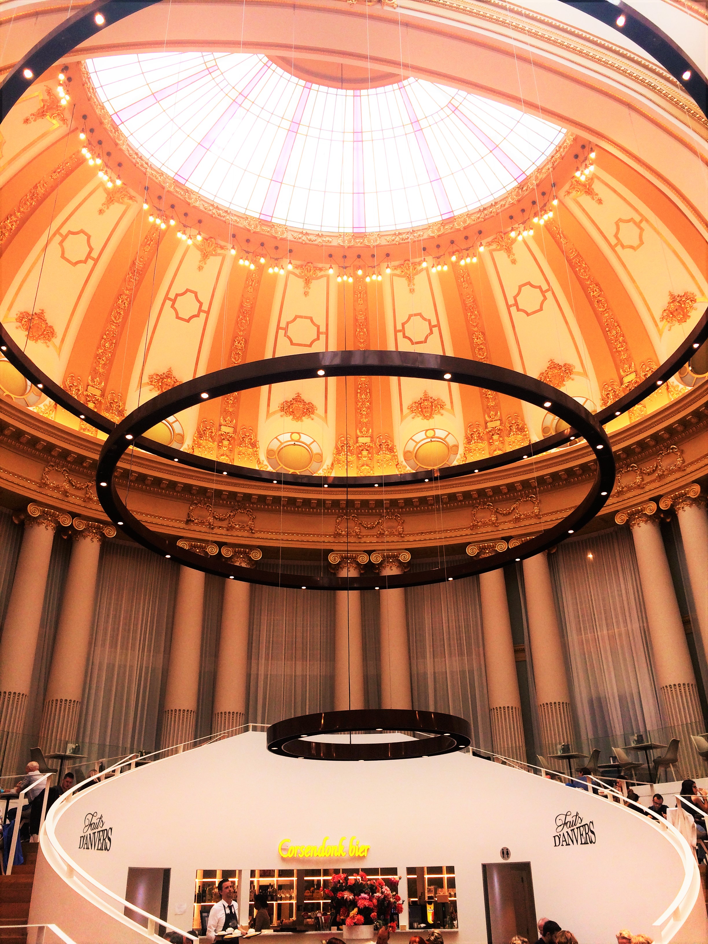 Een magnifiek gerestaureerd gebouw, dat vernield door een brand, minutieus terug tot leven is gebracht met authentiek bladgoud en marmer. Loop dit overweldigend pand uit aan de achterkant en in Hopland vind je de exclusievere en ‘expensive’ shops. Hello, Nicky Vankets!