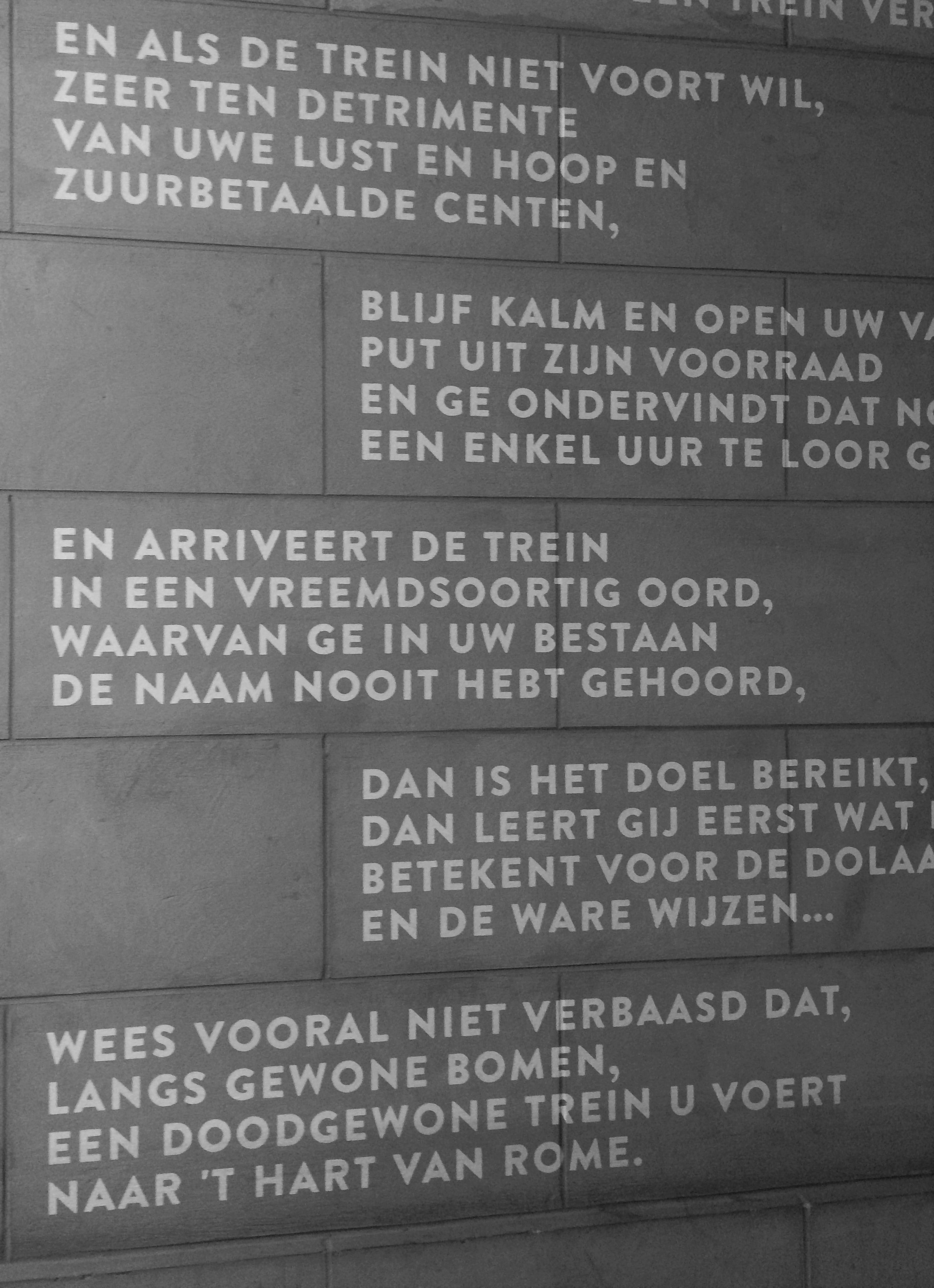 Vergaap je aan de lyrische architectuur van deze spoorwegkathedraal. Loop tot achteraan, waar het station uitmondt in het Kievitsplein. ’s Ochtends kan je in alle rust ontbijten bij Pain Quotidien. Heb jij in het station trouwens het gedicht gespot?