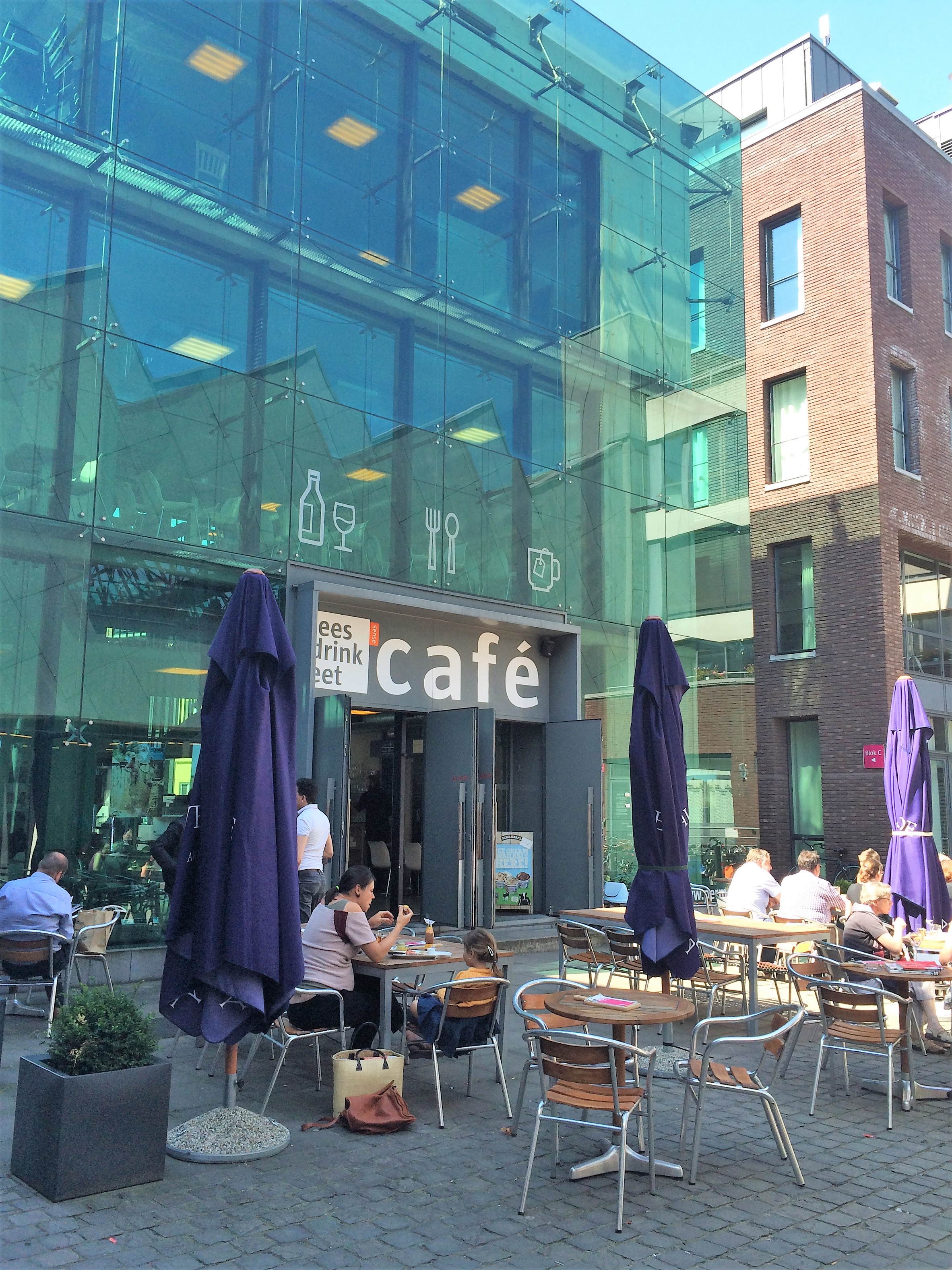 Wij doen nog een détourke door de Chinese straat (je kan niet missen!) naar het De Conincplein. Vroeger berucht om de criminaliteit. Nu omgetoverd tot een tof plekje met een sereen terras aan de bib Permeke!