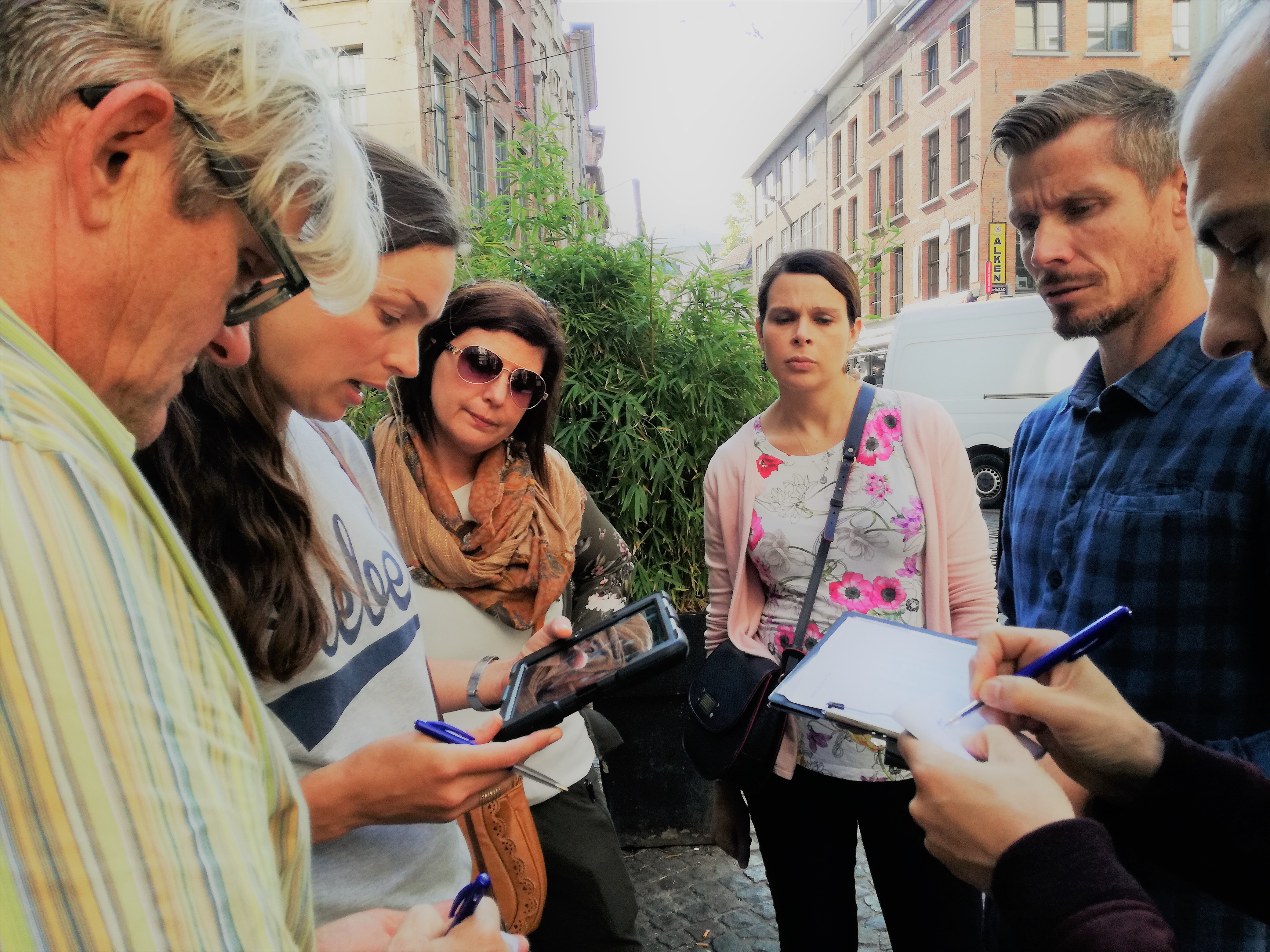 In het zaaltje staan de tafels klaar en de briefing begint. Serious shit! De groepen zijn verdeeld, we maken kennis en het startsein is gegeven. Om onze iPad te ontgrendelen moeten we een code zien te ontcijferen. Meteen een zootje warboel aan onze tafel, maar we slagen erin en kunnen vertrekken met ons ‘Mol-koffertje’. GO!