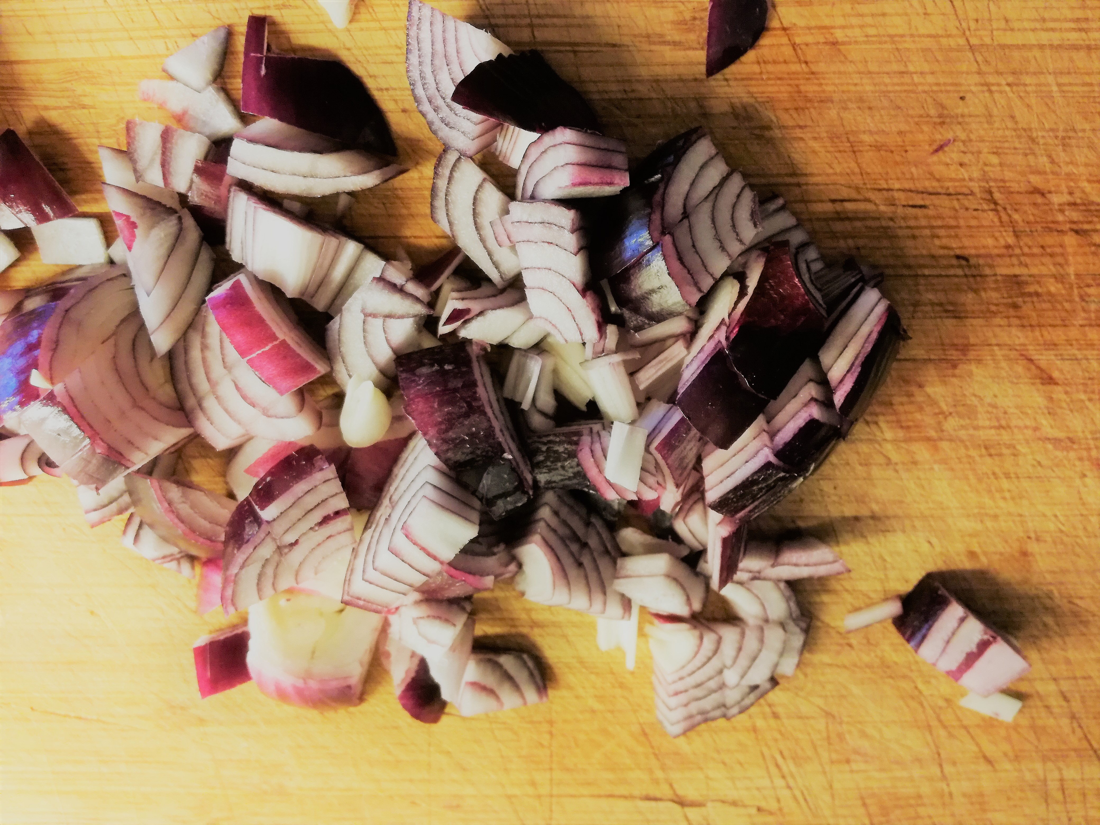 - fruit de fijngesneden ui in olijfolie