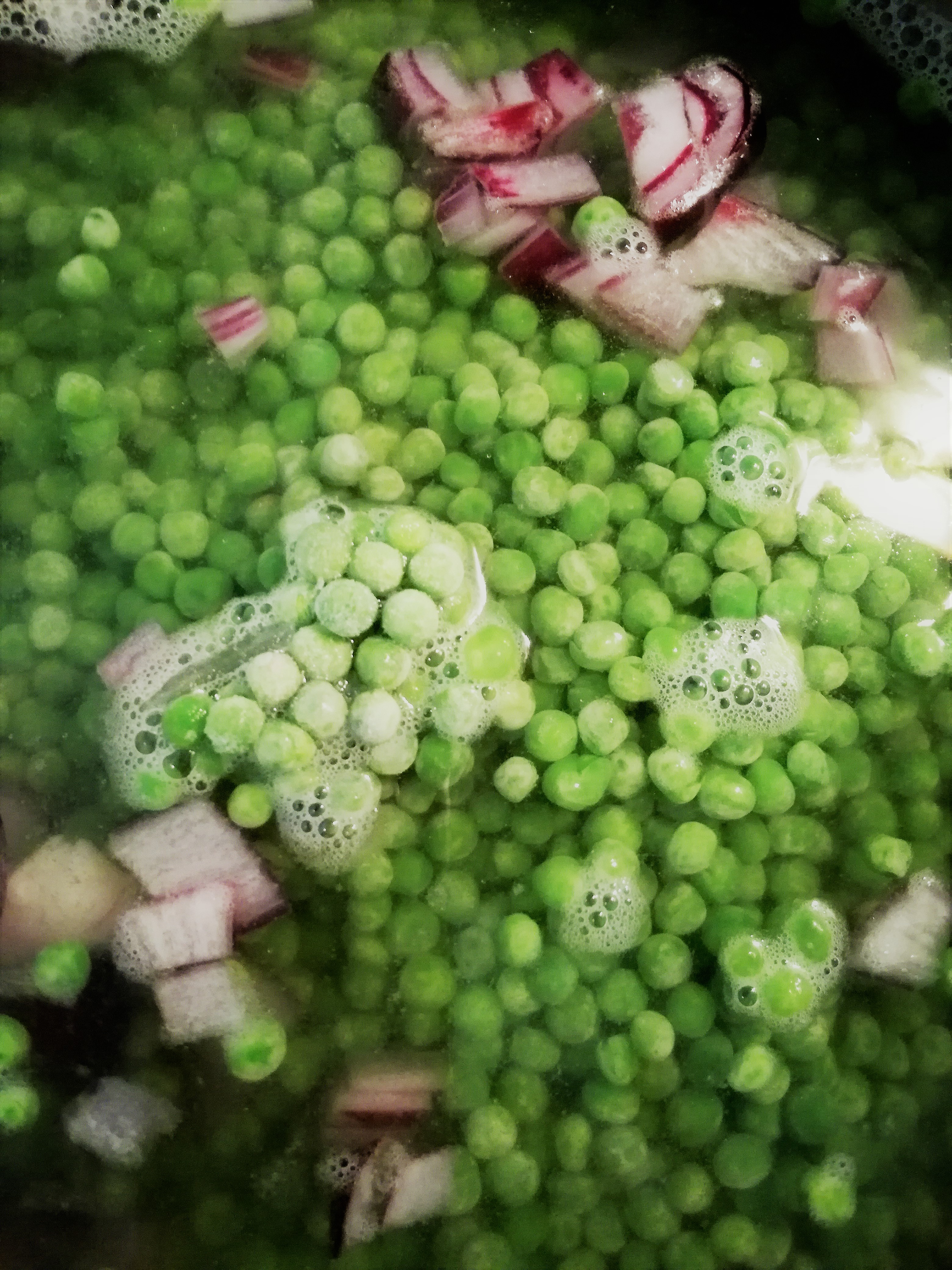- voeg de diepvrieserwten toe en laat 5 minuutjes koken