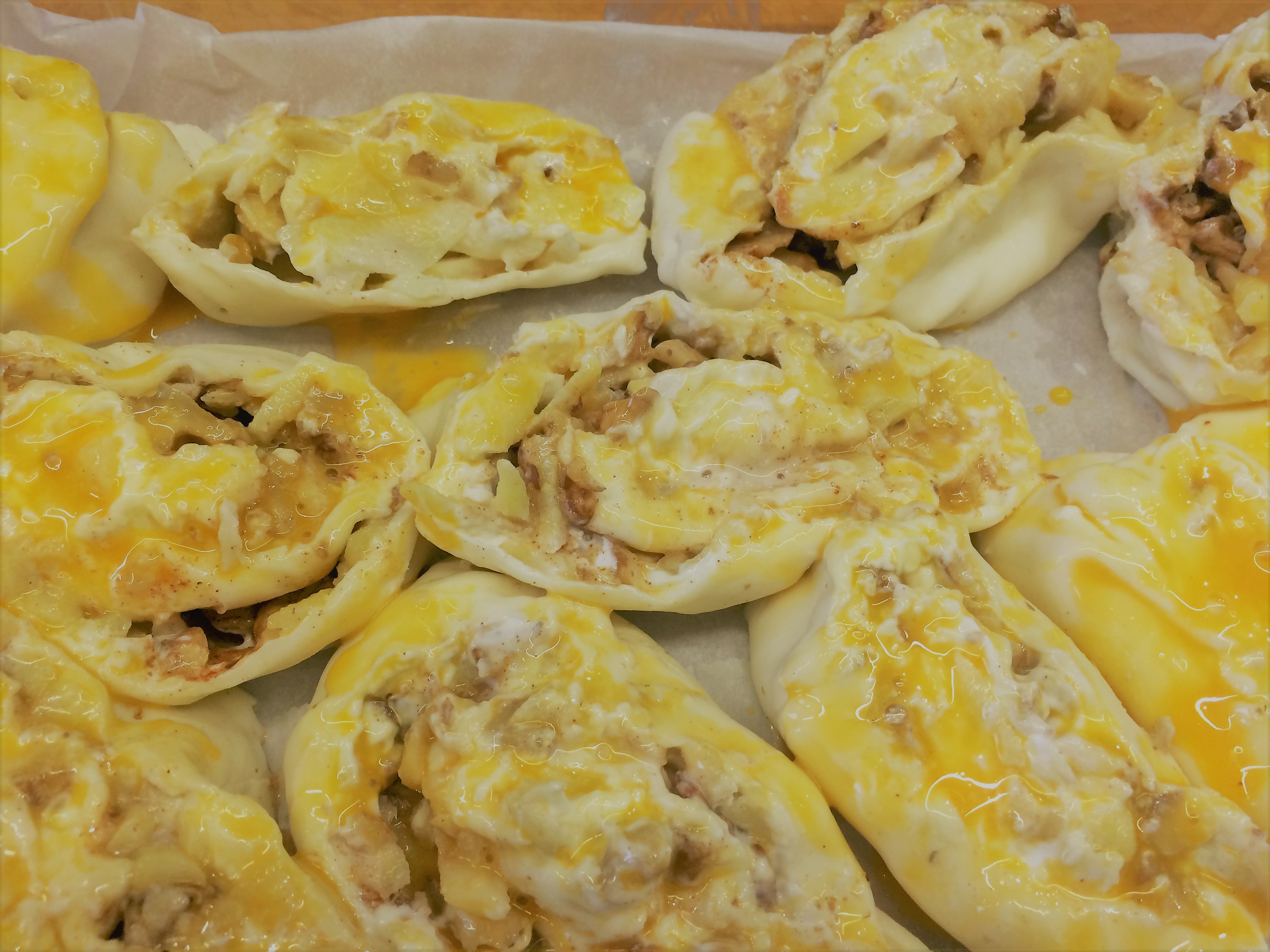 - klop het eigeel met wat water op en bestrijk de sneden hiermee