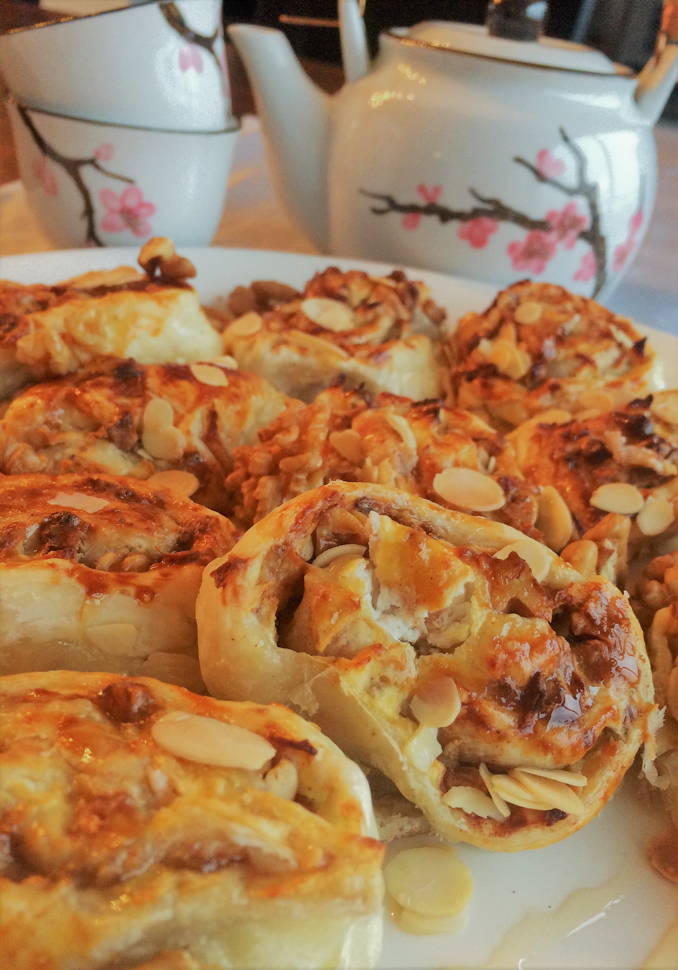 - smeer de geitenkaas op de uitgerolde bladerdeeg