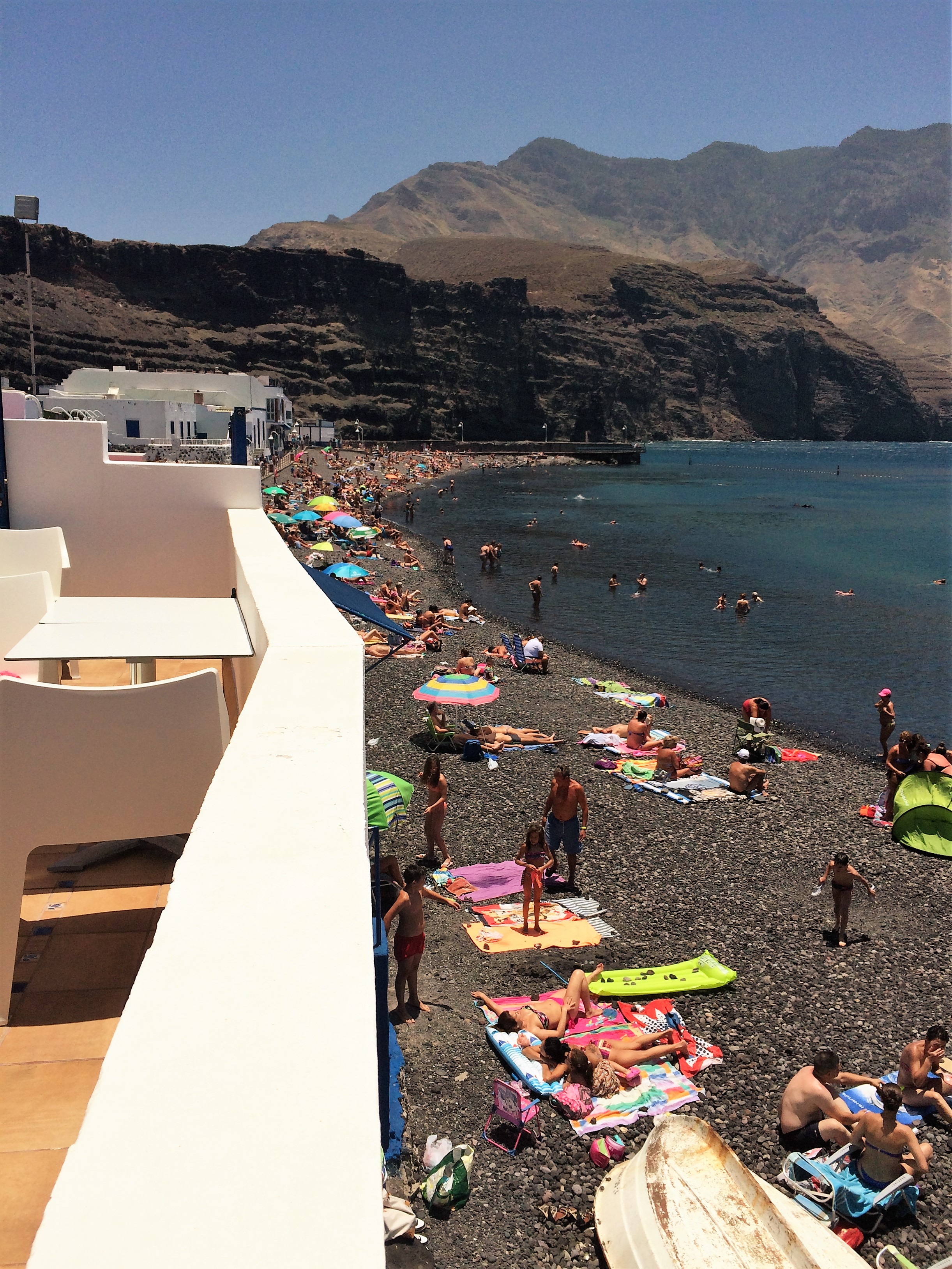 Ja, ik hou van kleine vissersdorpkes 😉 en Puerto de las Nieves is de haven van de Ferry Fred Olson. Wij verbleven in een subliem gerestaureerd vissershuisje op het keienstrand. Ons terras keek uit op de machtige bergen en op de ferry, met het komen en gaan van verkeer en passagiers.