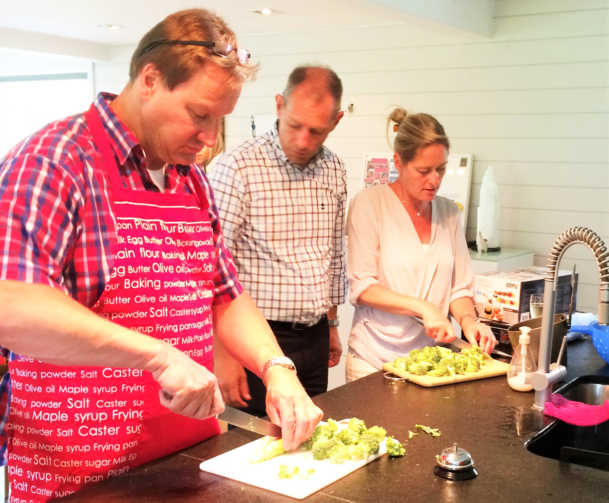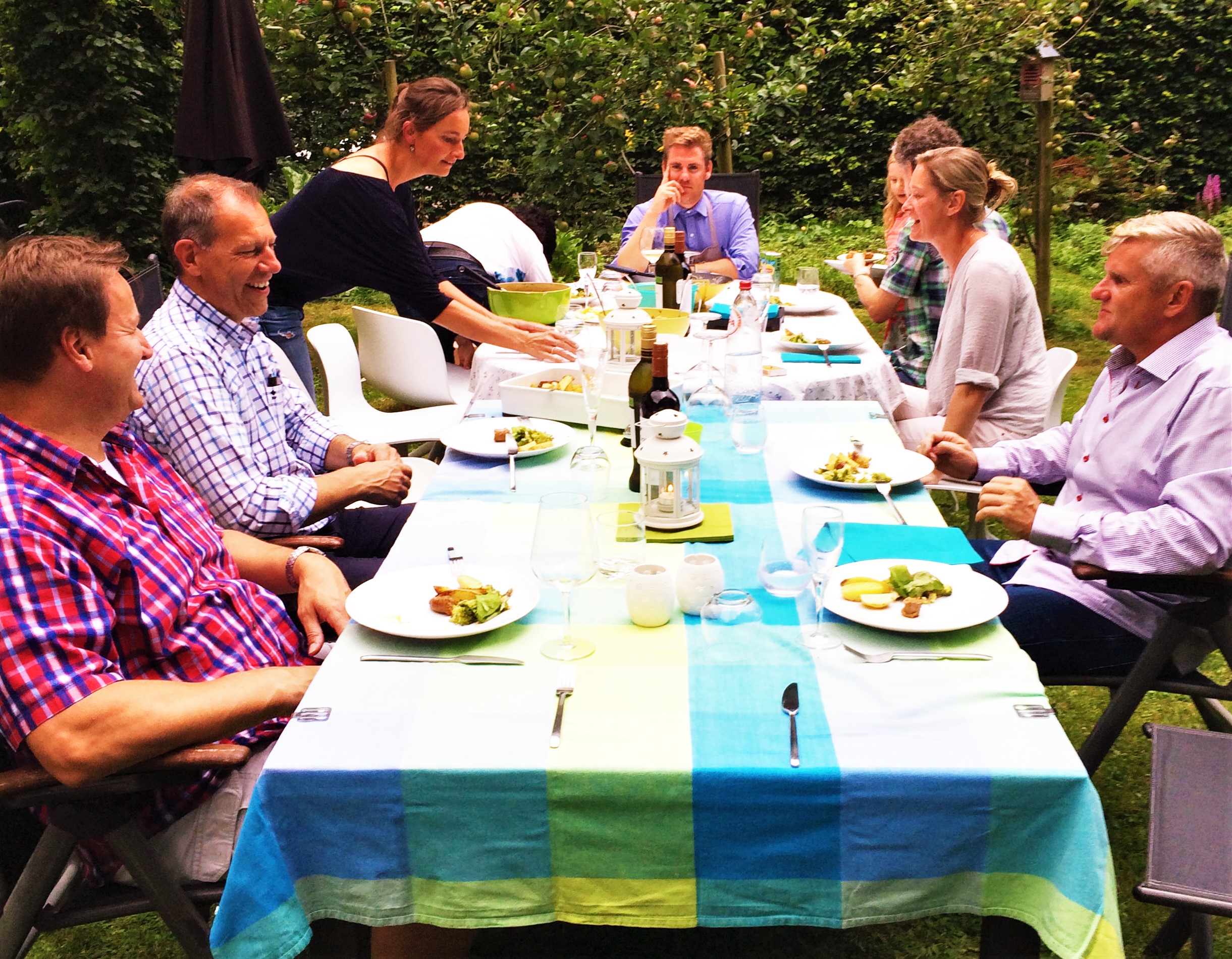Ik vond het gewoon beregezellig! Samen koken – ’t heeft toch iets. Goe gelachen, leuk om te zien hoe iedereen ervan genoot om nieuwe boeiende en fijne mensen te leren kennen. En nadien in ‘den hof’ samen lekker eten. Perfecte avond! De commerciële saus heb ik rustig van me af laten glijden 😉