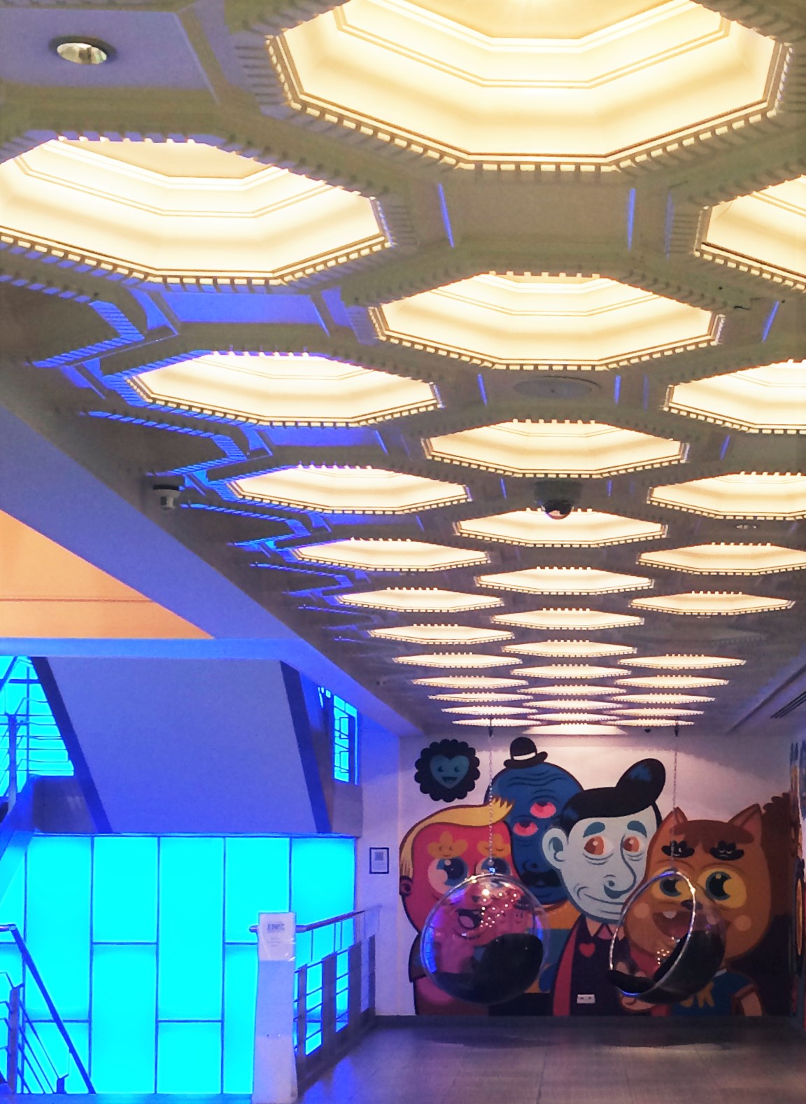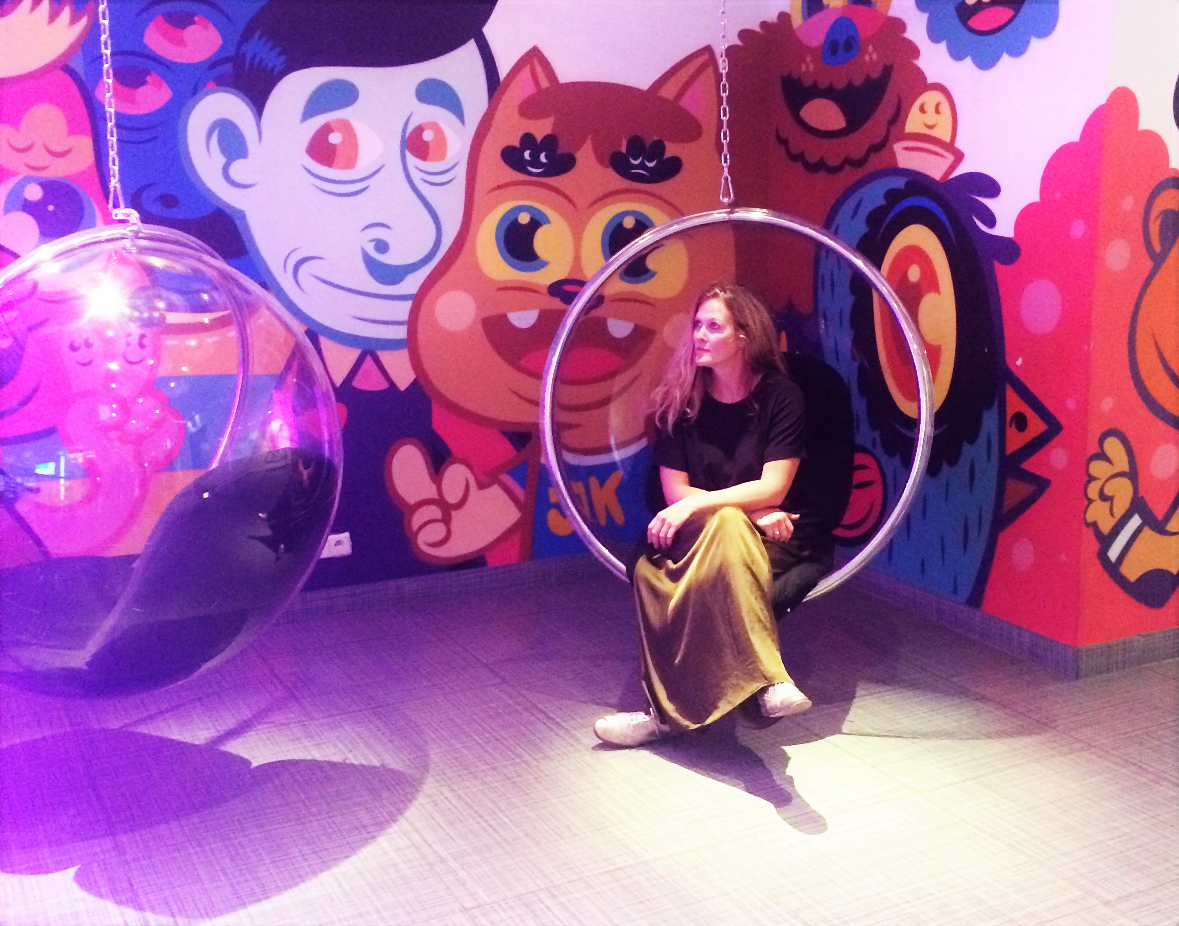 Tijdens de rondleiding kunnen we helaas (of gelukkig!) de loft niet bekijken. Artiesten logeren hier gratis in ruil voor een kunstwerk. Zelfs de lift inspireert…
