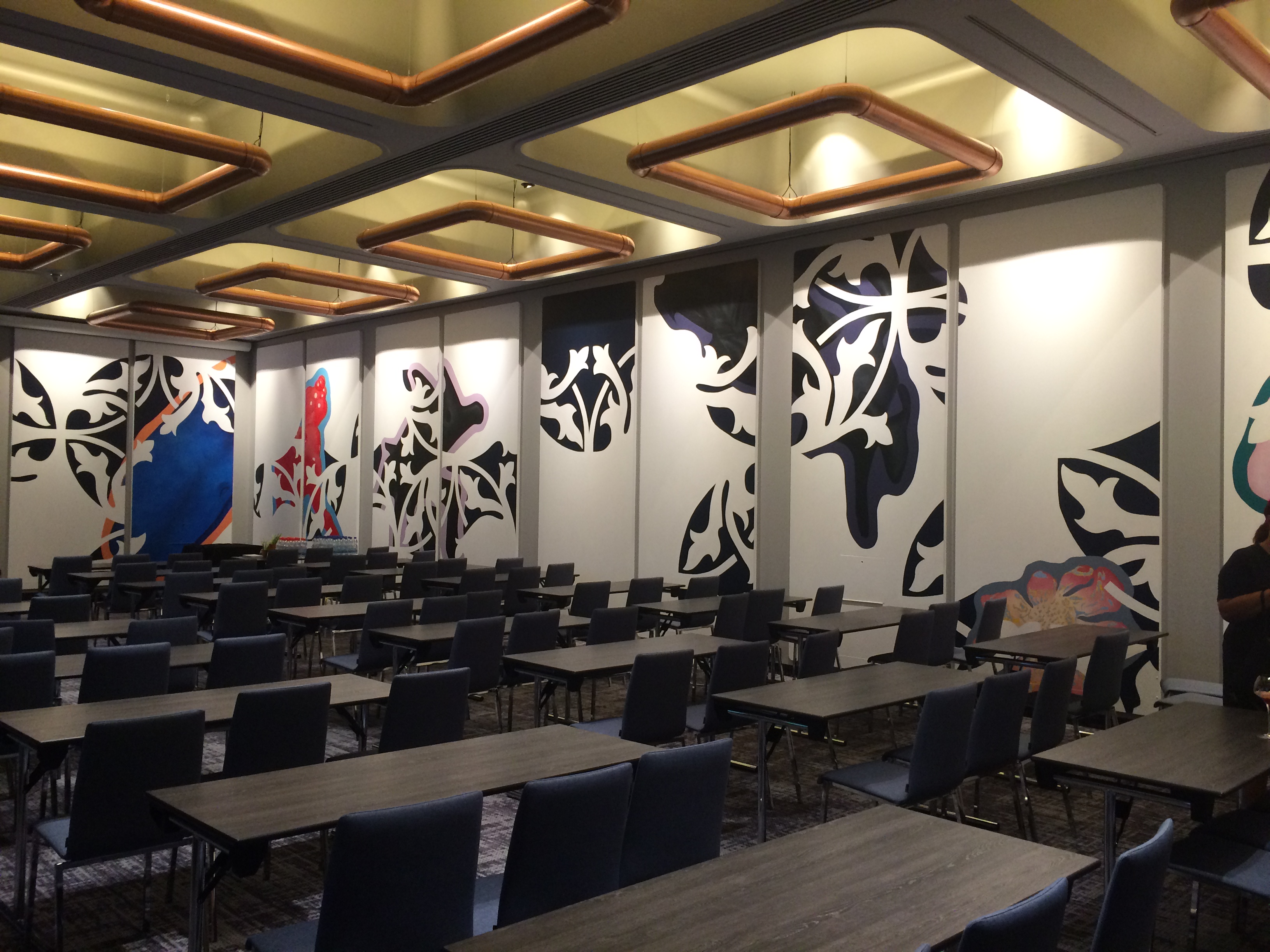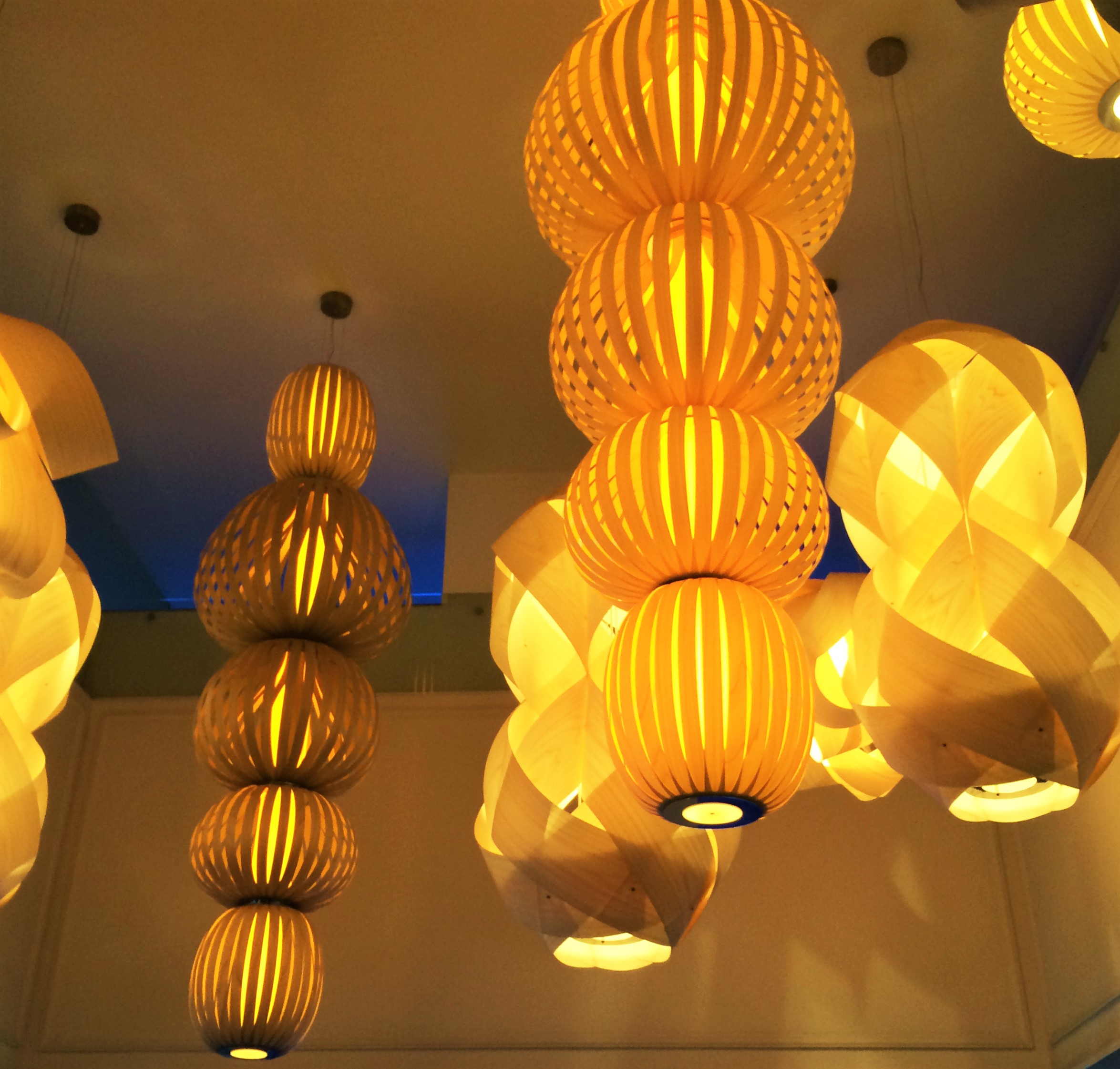 Sibran – onze enige mannelijke blogger in het gezelschap – had in de kamers al grijnzend de plasma TV uitgetest, maar in de conferentiezaal lijkt hij euforisch. Het gloednieuwe scherm kan je driedelig gelijktijdig gebruiken en bedekt de ganse muur… En dan heb ik het nog niet over de koperen lampen, waarvan ik felle fan ben. Kijk op dare to explore!