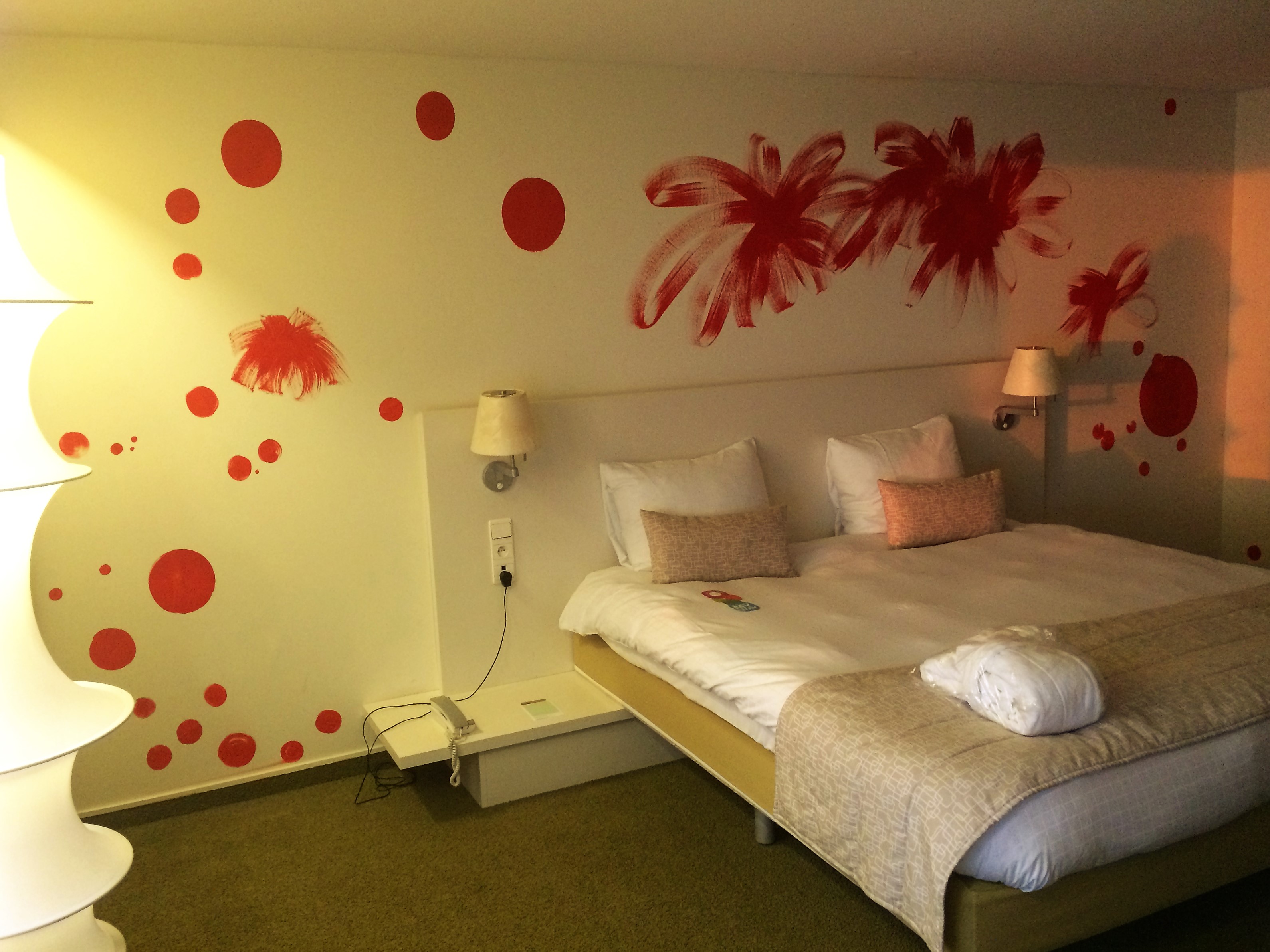 Het hotel nodigde 287 Europese kunstenaars uit om in elke kamer een fresco te schilderen. Zo krijg je unieke kamers met een artistieke ‘bloom’ interpretatie. Als gast kan je jouw favoriete kamer kiezen…écht!