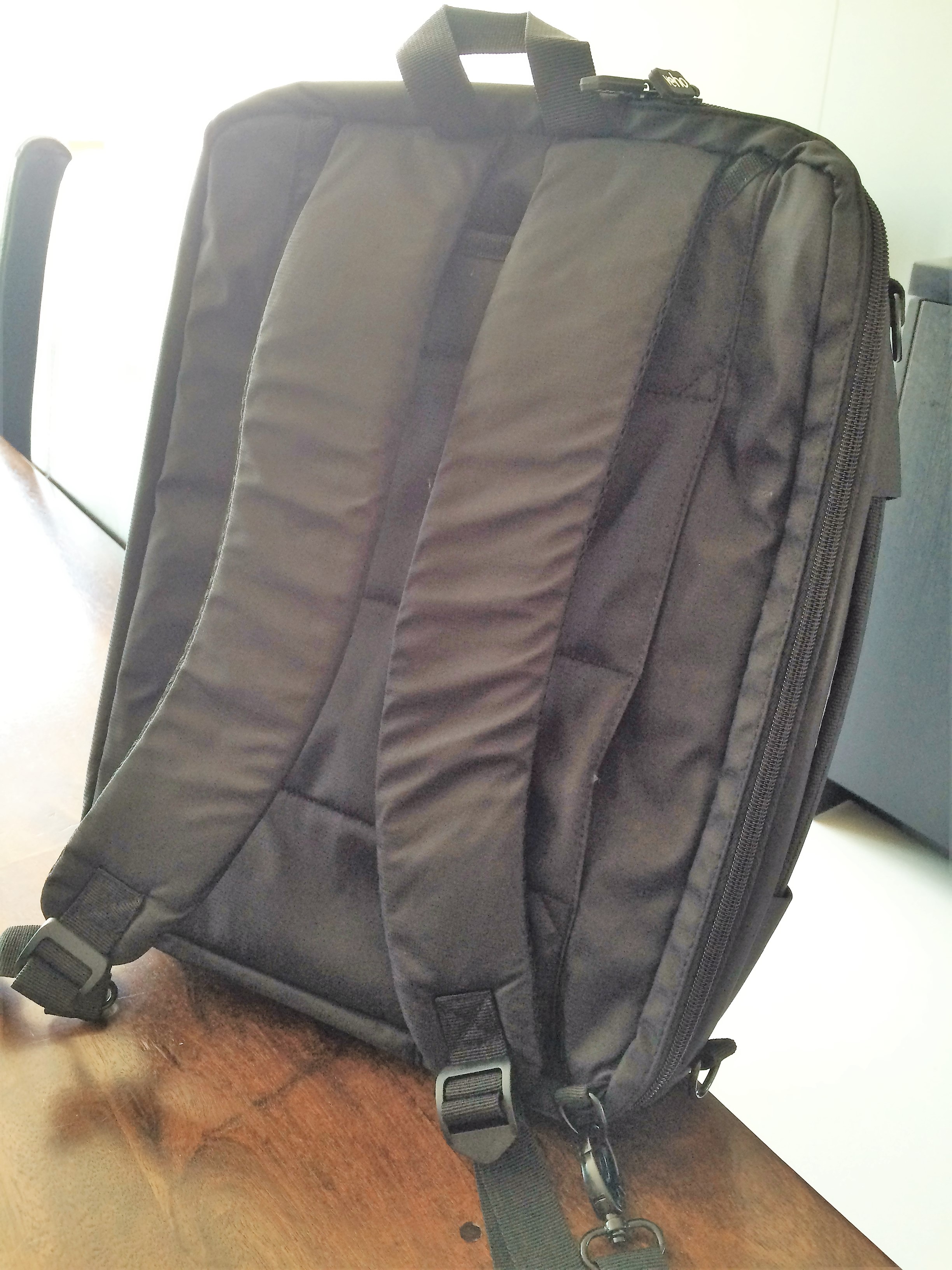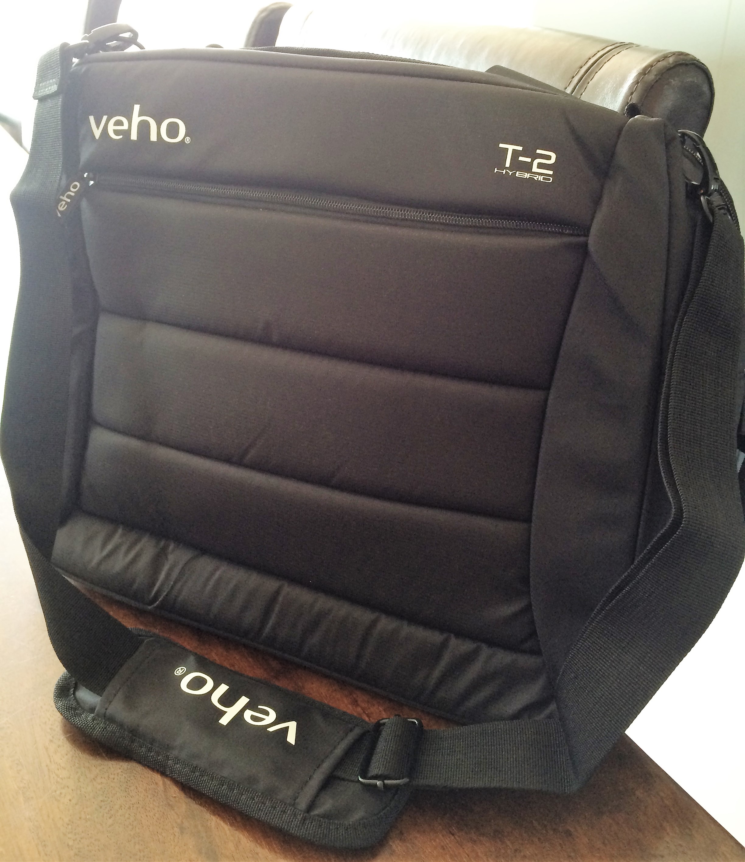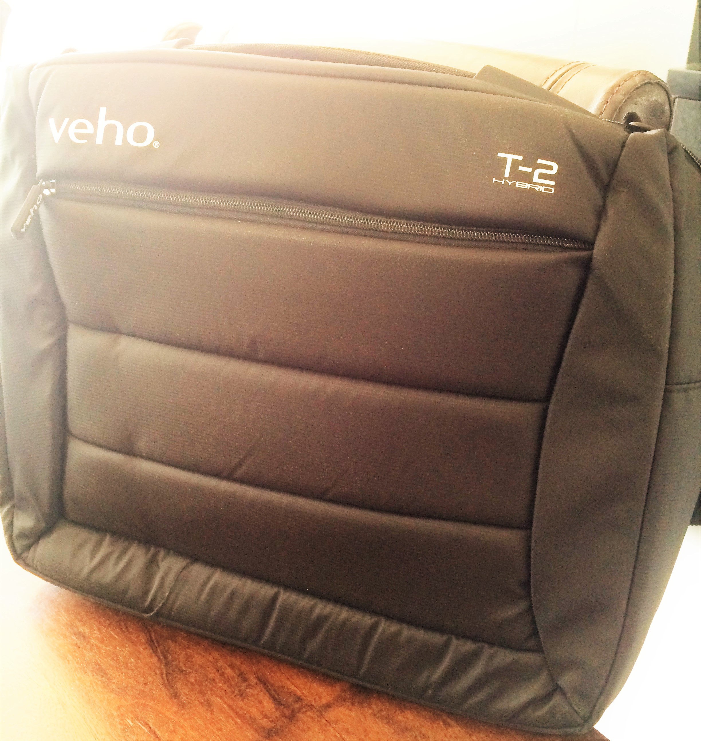 Zeg niet ‘gewone’ laptoptas tegen een Veho T-2 hybrid, want hij komt uit een beter mileu als een ‘super padded laptop/notebook bag with rucksack option.’ En ik mag als ervaringsdeskundige beamen dat de rugzakoptie gaaf draagt.