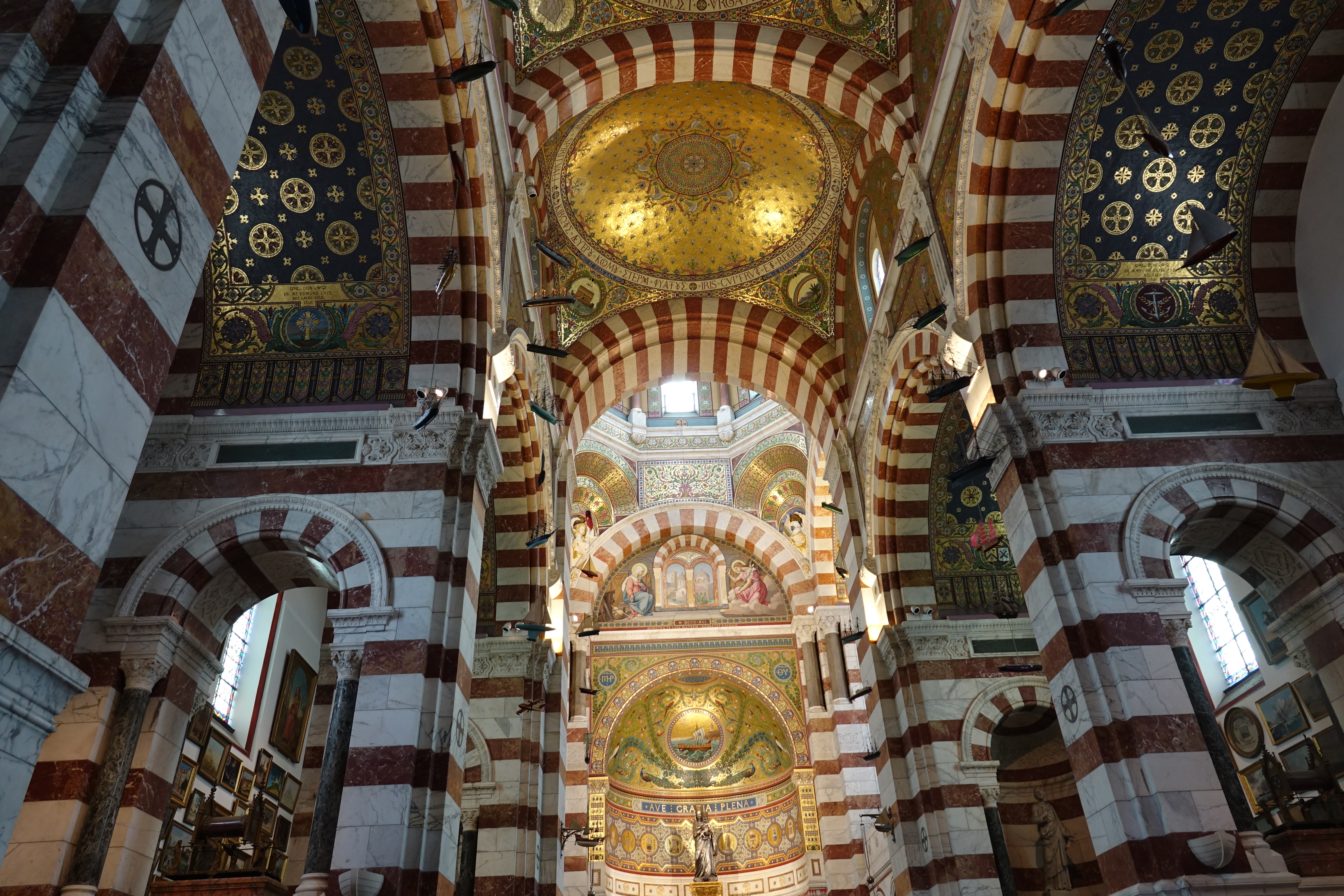 De skyline van Marseille kenmerkt zich door de basiliek van Notre Dame de la Garde. Het gigantische beeld stelt ‘la bonne mère’ voor: de beschermheilige, die een oogje op de zeevaarders houdt.