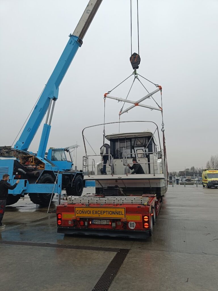 Wat een spannende dag! Na een telefoontje horen we dat de chauffeur gisteren 6 uur in de file had gestaan maar slaagde er toch in om op tijd te zijn. Gewoonweg rijden van 9 tot 23 uur 😬. OH ja, hij vond de 2 spanbanden eigenlijk maar net voldoende om de boot vast te zetten… slik!