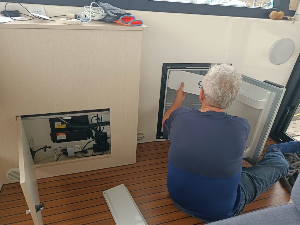 Na een bewogen dag proberen we alle toestellen uit. Het duurt even voordat we de toevoer toilet vinden (ondanks de vele filmpjes van de vorige eigenaar). Alleen de koelkast blijft een raadsel en heel wat uitzoekwerk met betrekking tot de verwarming. Het is ondertussen 23 graden en we krijgen het niet minder 😬. Komt goed.