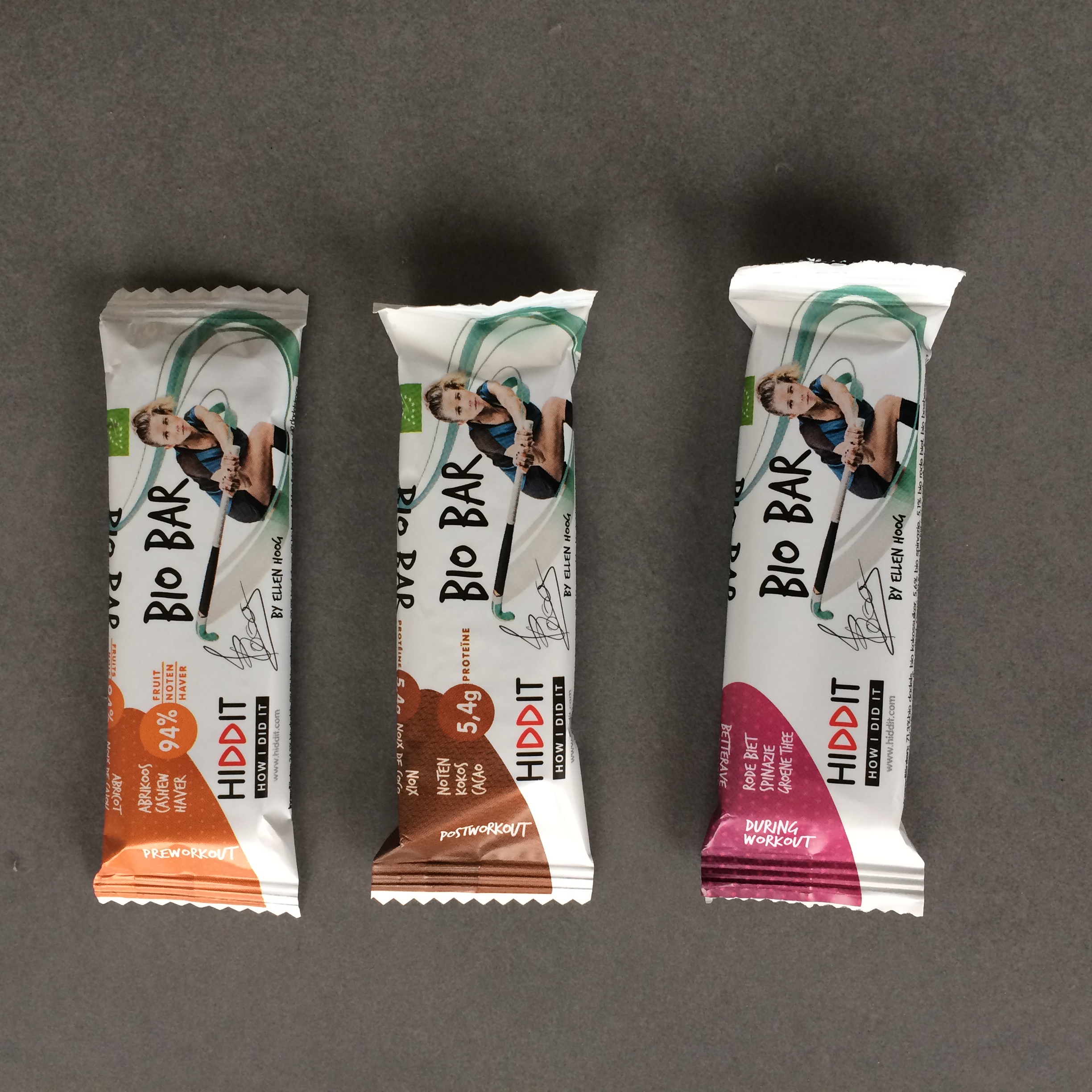 Hiddit heeft 3 graanrepen op de markt: pre – during – post workout. Dus manlief proeft ze alle drie op een sportieve ochtend. ‘De verpakking opent gemakkelijk en met geen enkele van de repen heb ik problemen met mijn (gevoelige) maag. Voor mij is het moeilijk om de 3 diverse repen te onderscheiden (zonder bril!). Ik merk dat mijn spieren niet opbranden. Dat is knap!’
