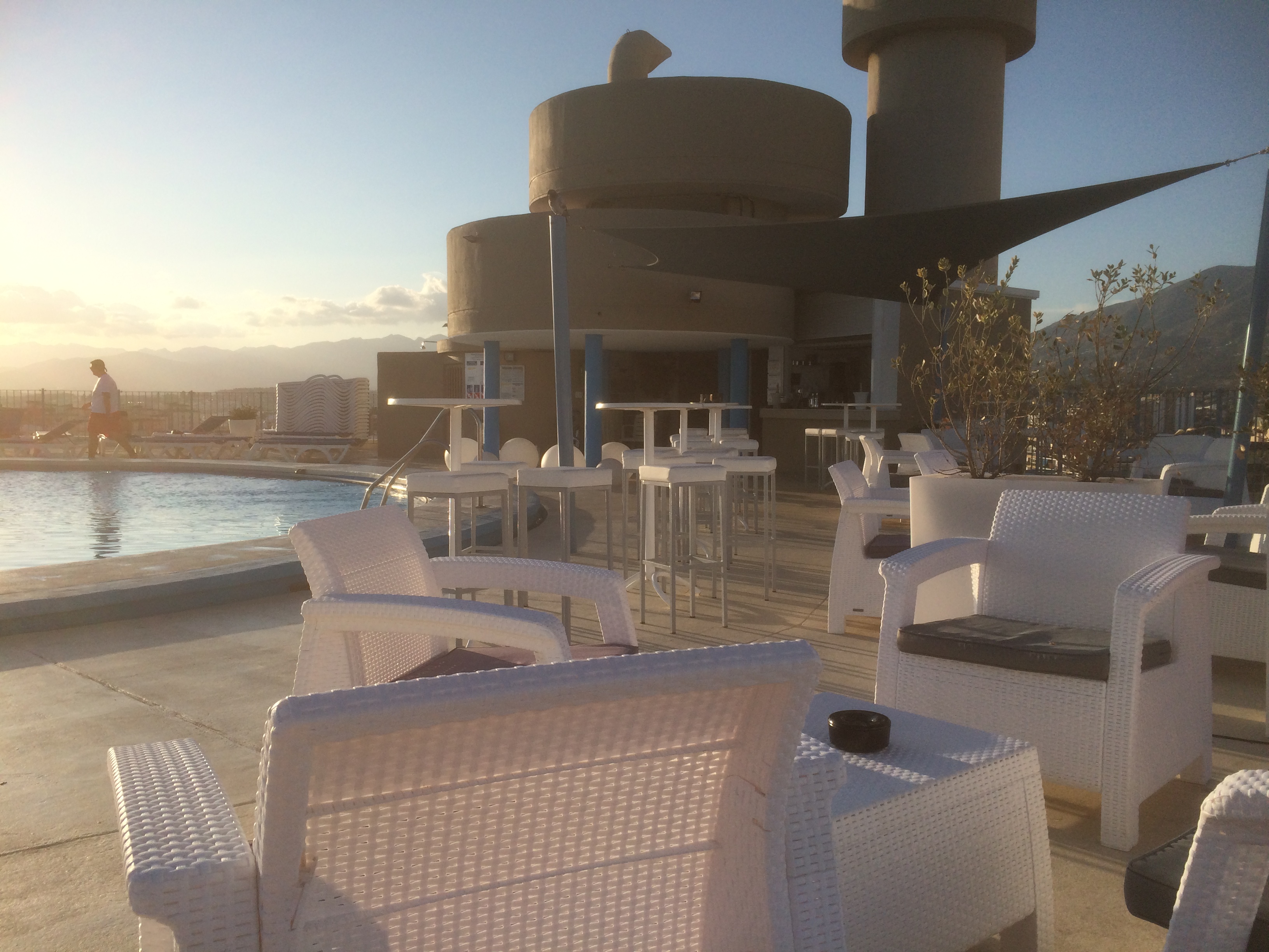 Via Booking.com reserveren we een hotelkamer in El Puerto Pierre et Vacances, een simpele, goedkope kamer met terras en als enige, grote voordeel: het zwembad op het dak (niet voor rolstoelgebruikers!) met ongelooflijk uitzicht! Grote nadeel in het hotel: de consistente en stinkende sigarettenrook in de liften…