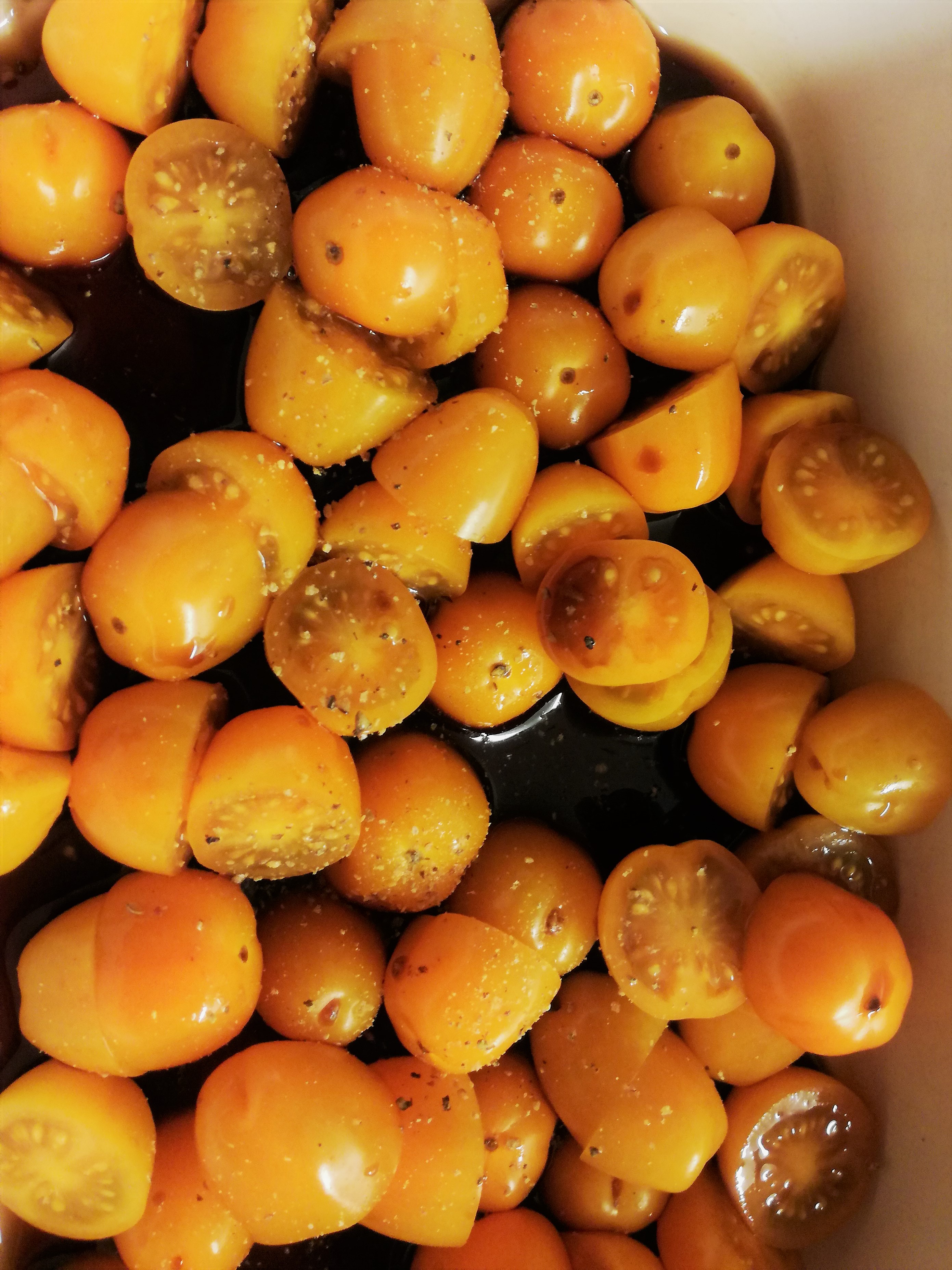 - marineer de kerstomaatjes in balsamico met peper van de molen