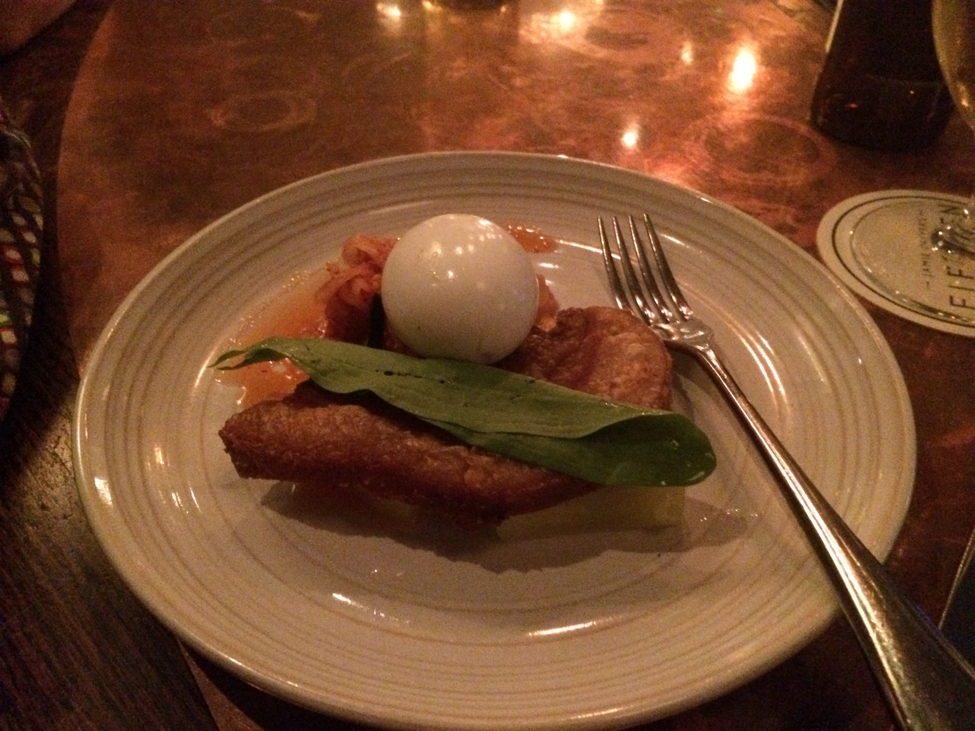 We gaan erg vroeg op pad en dat loont! Fifteen heeft nog maar 15 minuutjes de deuren geopend en we vinden nog nét een plaatske aan de bar. Oef! Zoals verwacht kan de presentatie van de gerechten beter, maar de smaken verrassen ons weer heel positief. Op onze rekening merken we dat we £1 doneren voor dit project… Graag!