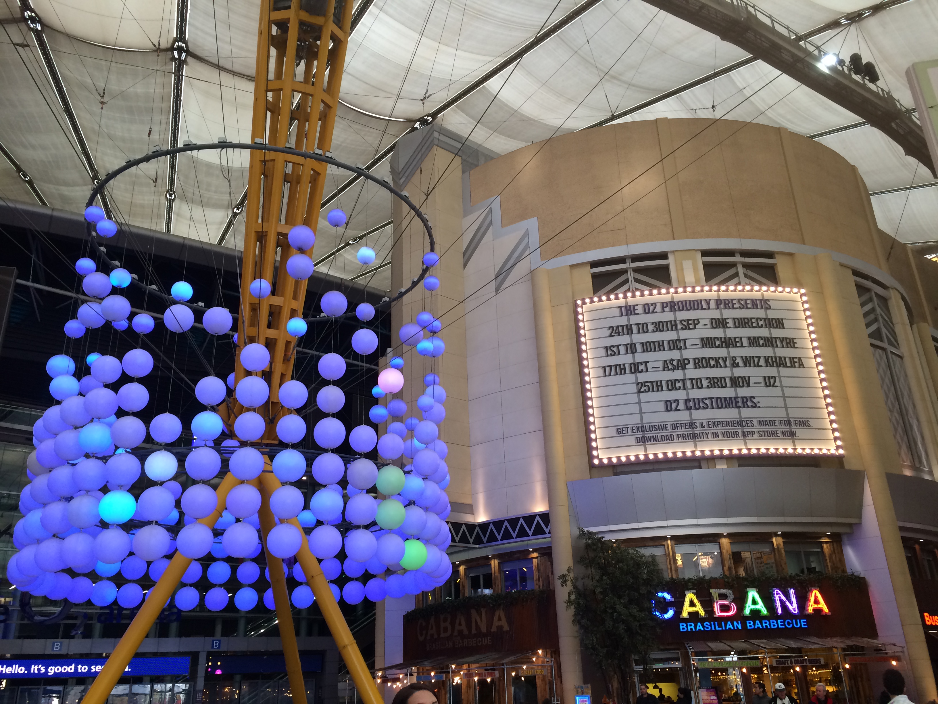 Met onze Emirates Cable Car arriveren we aan de O2. Een opportuniteit om effe binnen te gluren. Vandaag start U2 net hun optredens in London een hele week lang. Hier kunnen de concertgangers vooraf eten in een 30-tal verschillende restaurantjes. Sportpaleis, misschien het concept herzien??