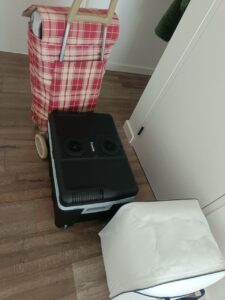 We hebben een auto gehuurd bij Kenis Share (tip: als je een aandeel hebt van Campina Energie krijg je korting!) omdat we heel wat spullen meenemen. Deze Kangoo moesten we ophalen op Schorvoort (“onze wagens” op parking Muylenberg waren bezet), maar de garage belde net voordat we vertrokken dat die auto een ongeval heeft. Gelukkig kunnen we onze “vaste auto” nu toch boeken (die was bezet voor een poetsbeurt). Oef! De koelbox (met wat drank voor de helpende Zeerotten) en valiezen staan klaar…