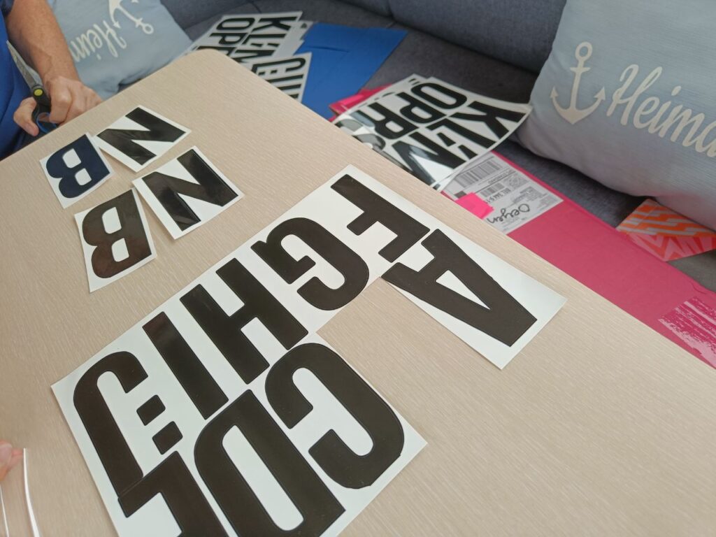 Het oude Duitse kenteken moet van de boot (gelukt met de haardroger) en ons Belgisch moet erop. Dirk knipt zorgvuldig de letters en cijfers uit en trekt naar buiten. Daar zorgt een windvlaag ervoor dat Dirk een paar letters net kan redden voordat ze in het water verdwijnen. Eentje ligt op het dak π¬. Op de achterkant kleeft hij Turnhout, een wat hobbelig woord maar dat komt door de golven π.