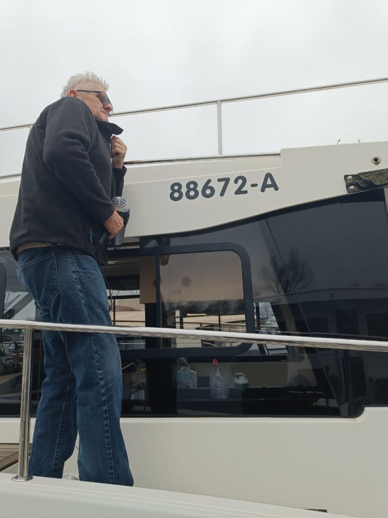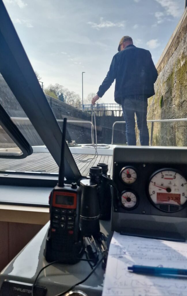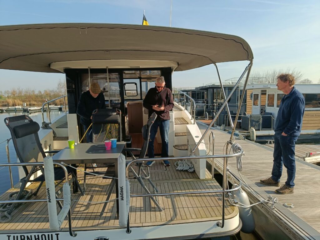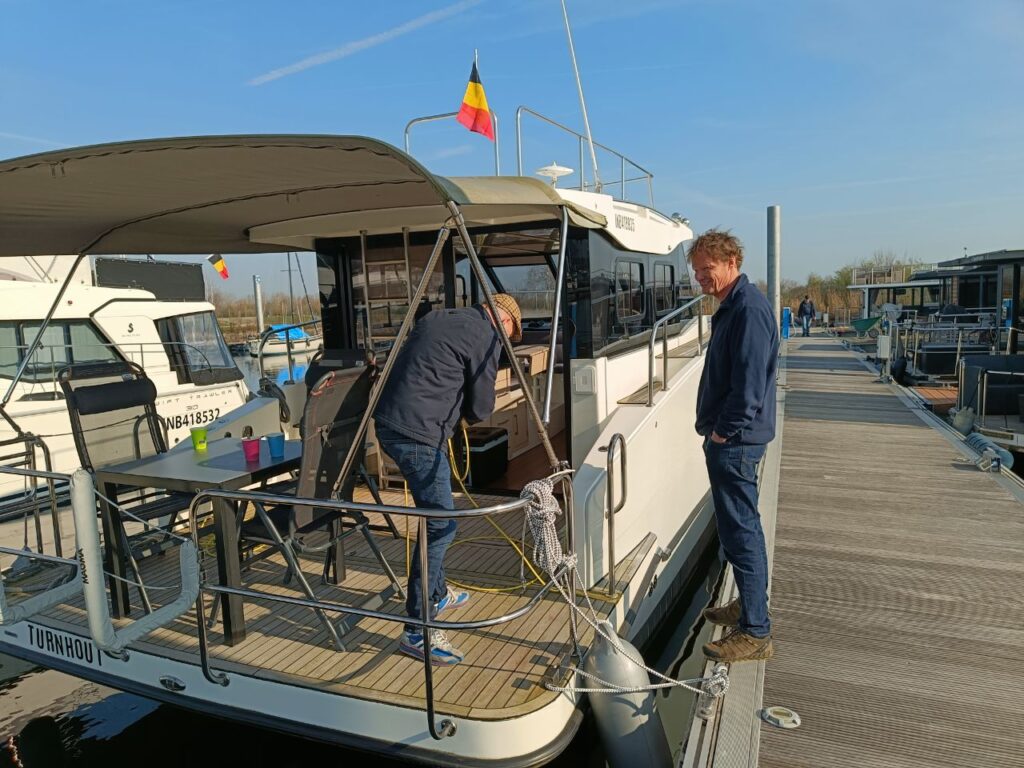 Na een ontbijt buiten βοΈ komt collega Luc helpen om te tanken. De beide heren meren af en varen naar het tankstation om een dikke π― liter diesel te tanken (katsjing). Ze varen terug naar ons plekje en door de wind lukt het niet om met de boeg naar voor aan te meren, maar andersom wel. Nogmaals dikke merci aan Luc voor de hulp!